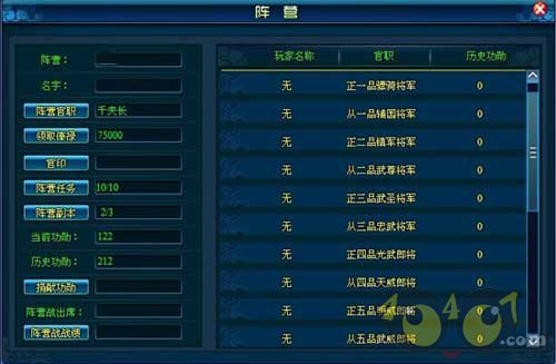 官印作为身份的象征是以阵营为单位的。在游戏界面下方点开阵营界面可以看到阵营的完整系统,阵营官职,俸禄状况、当前功勋、历史功勋、阵营战出席等等信息,还有称号及获得者都一目了然。在榜的都是阵营精英,其中顶级官职非本族大将军莫属了!