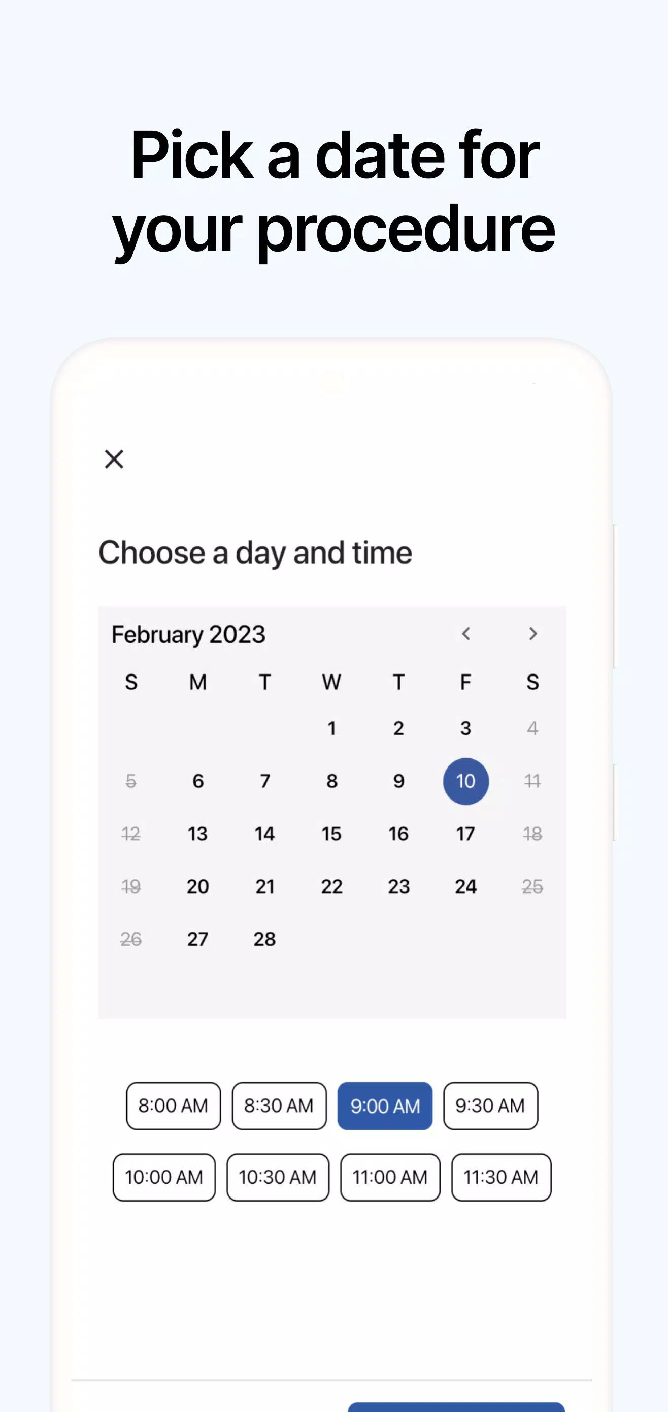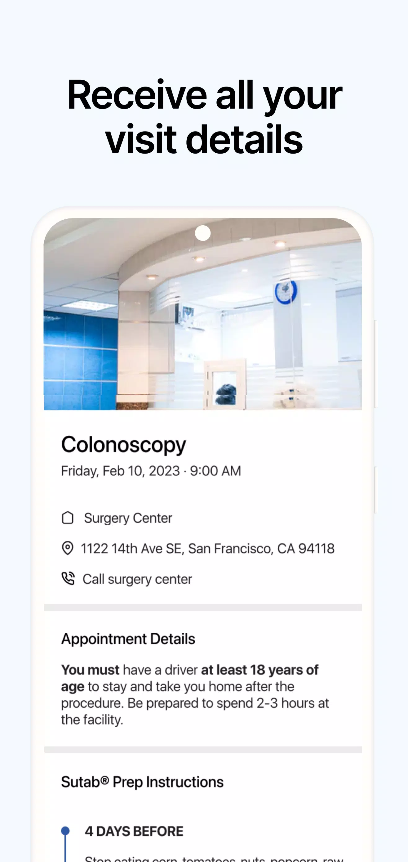 * Convenience of choosing procedure date and filling out pre-screening questionnaire