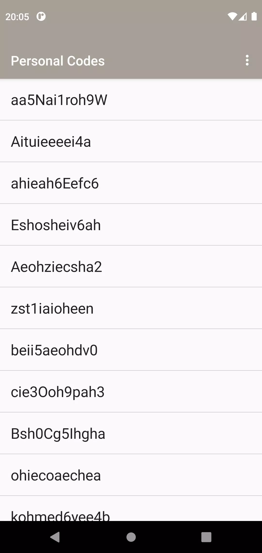 Generate random codes effortlessly with Personal Codes. Customize the symbols used in your codes, adjust the length and size of the symbols, and easily refresh the page with a simple swipe or menu item. Copy codes to your clipboard with a long touch, all while keeping your selections private to prevent any security risks. It's important to note that Personal Codes does not use cryptographic methods and cannot guarantee the uniqueness of the random generator. For higher levels of security, it's recommended to use certified tools. Stay organized and secure with Personal Codes today.