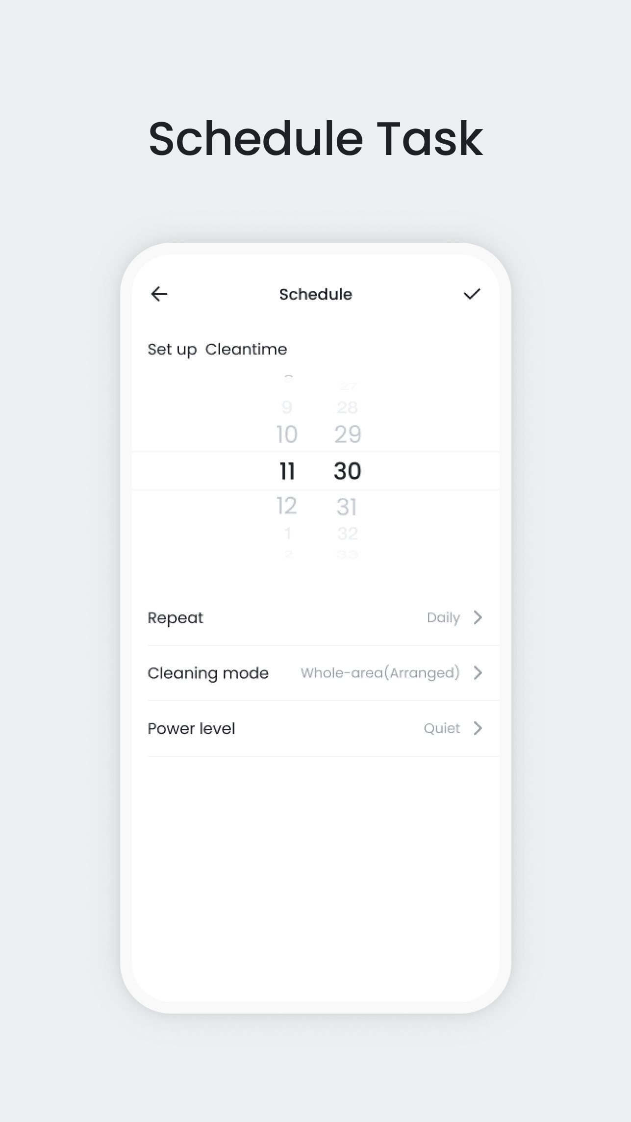 * Remote Management: Set up your cleaning schedule from anywhere and come back to a refreshed space without any hassle.