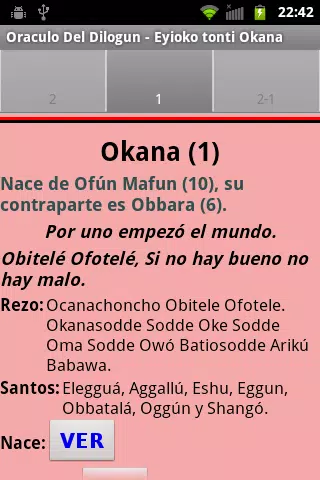 * Utilize the Secrets: The app's uncovering of the secrets associated with each letra can unlock hidden meanings and symbolism. Take advantage of this feature to delve deeper into the spiritual significance of the Regla de Osha's letras and expand your interpretative skills.