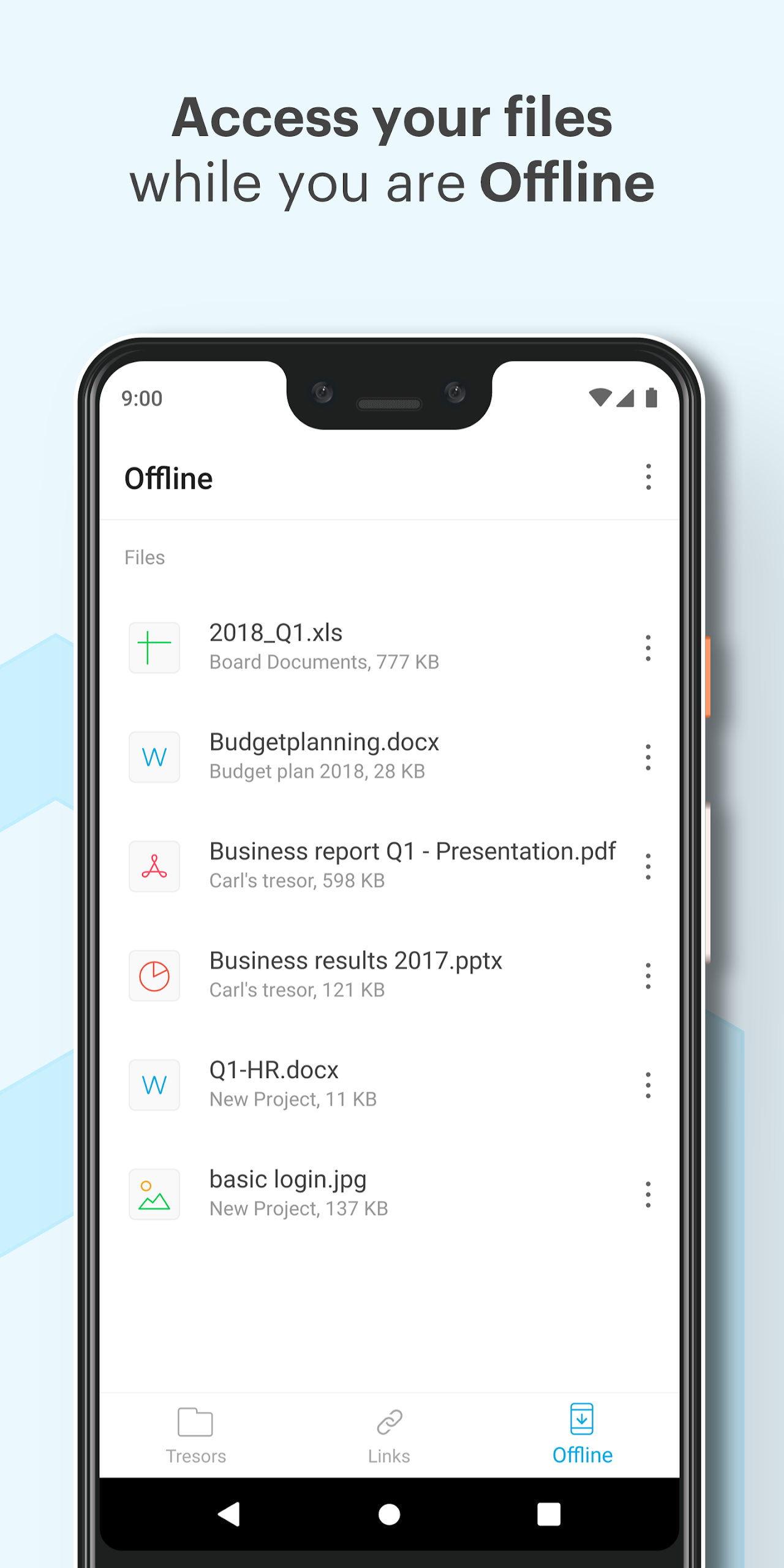 Easy access: Access your files from any Android device, modify them offline, and back up photos securely with the camera upload feature.