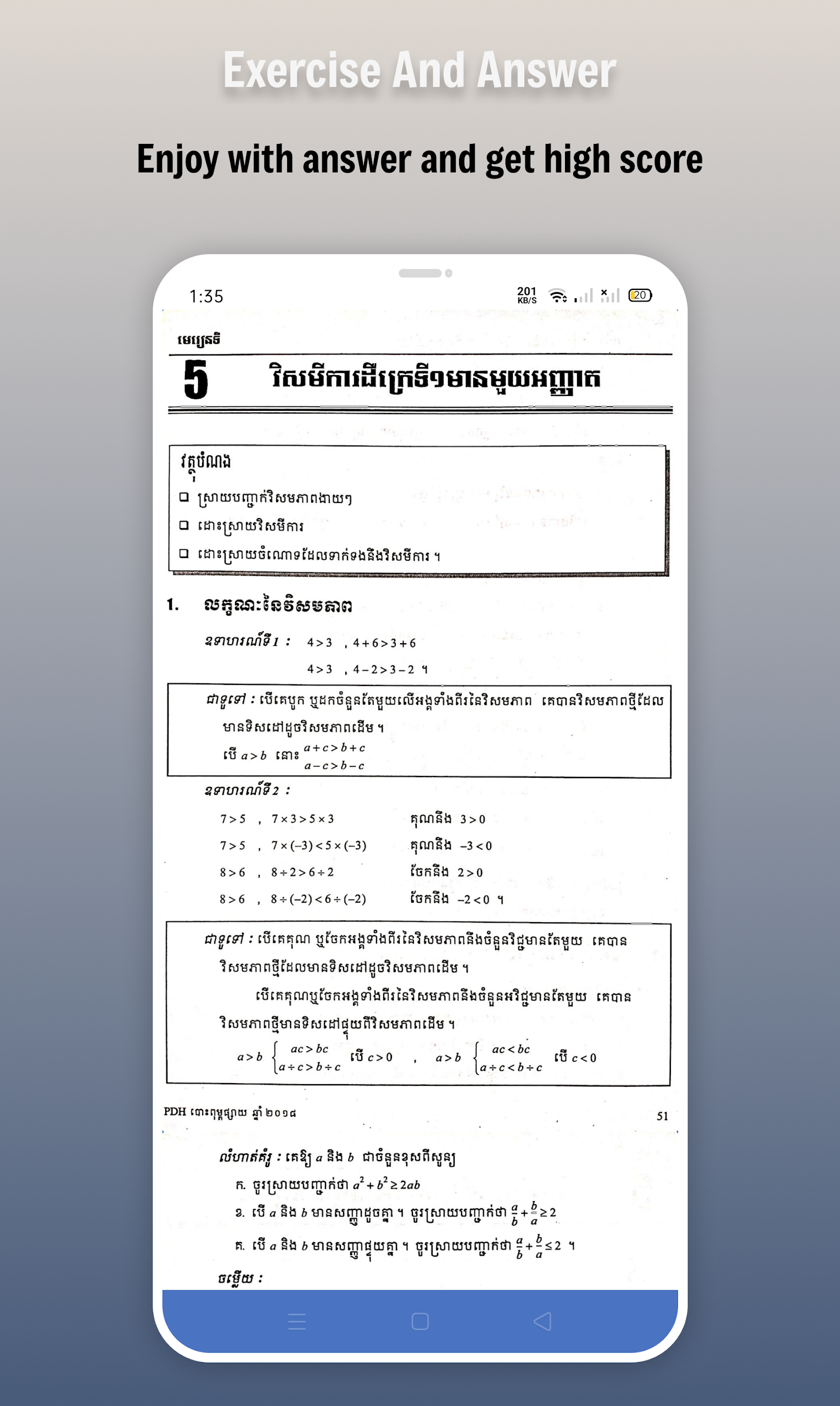 Introducing "កំណែគណិតវិទ្យា ថ្នាក់ទី៩," a comprehensive mobile application designed for students interested in mastering 9th-grade mathematics. This user-friendly app provides a complete math textbook with solutions, exercises, and lesson-based questions, making learning easier and more accessible. With a clear exam-focused approach and regularly updated content, it serves as a valuable resource for self-learners and exam preparation. Accessible both online and offline, this app covers a wide range of topics including basic calculations, equations, functions, and more. Download "Math Grade 9" now to enhance your math skills and excel in your studies effortlessly.