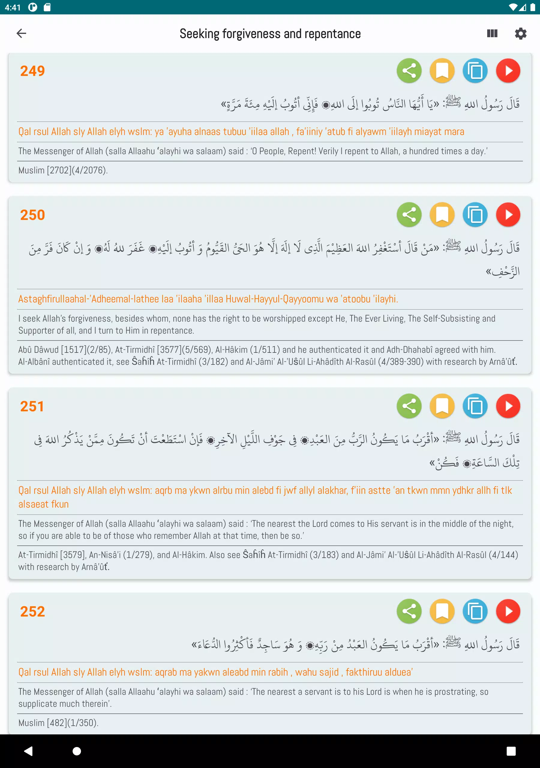 In conclusion, this App provides a user-friendly interface with a wide range of Islamic supplications and Zikr. It is free to download, ad-free, and offers offline use. With features such as bookmarking, daily reminders, and audio of Duas/Zikir, Hisnul Muslim English is a must-have for anyone seeking spiritual guidance and connection with their faith. Download now and enrich your spiritual journey!
