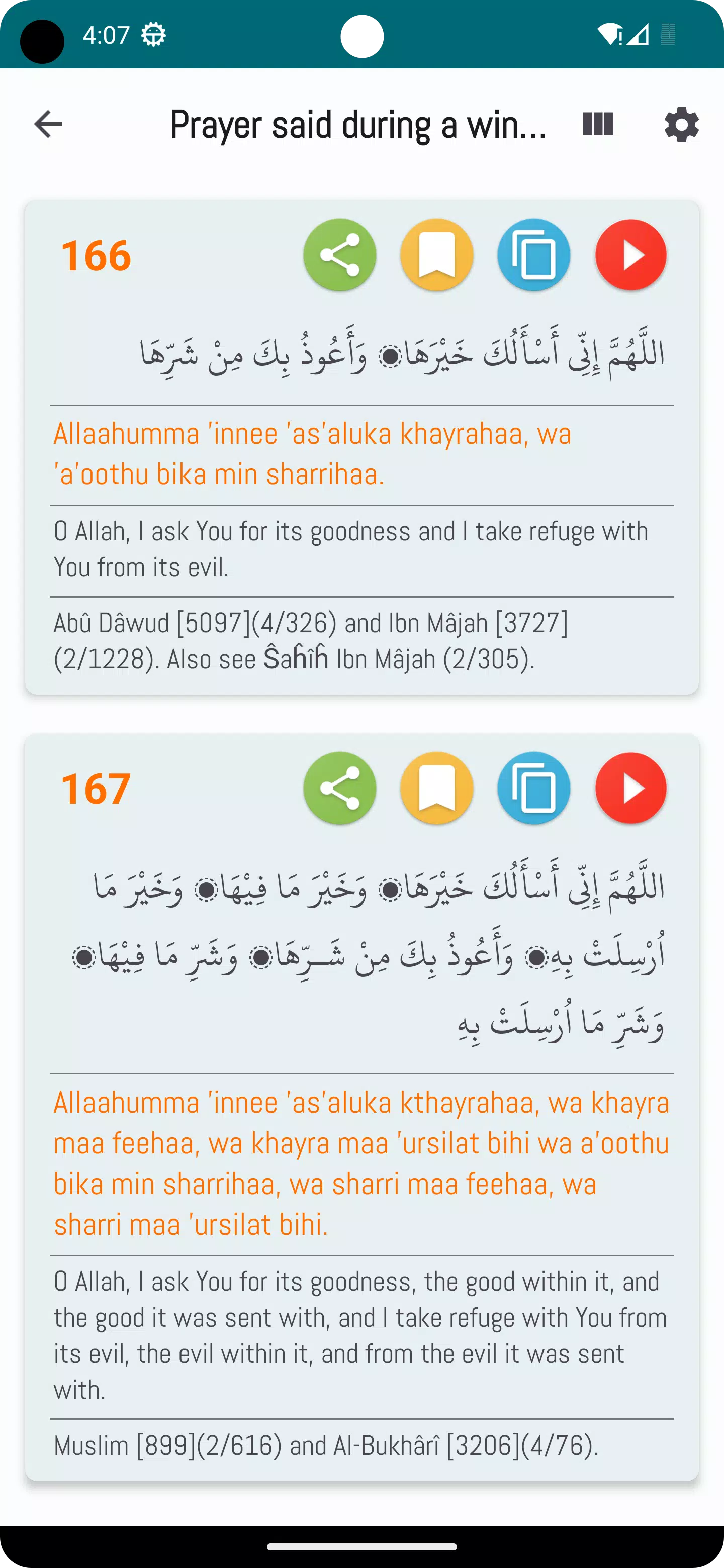 > Contains 267 Duas and Azkar from the Quran and Hadith.