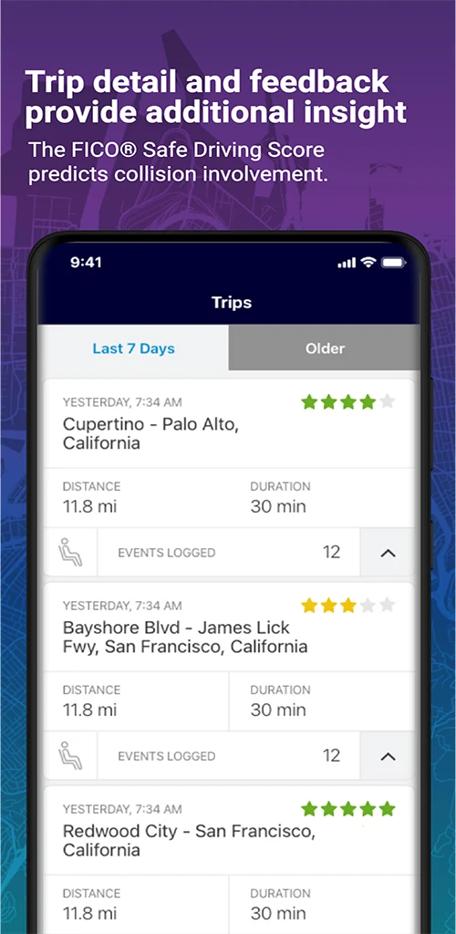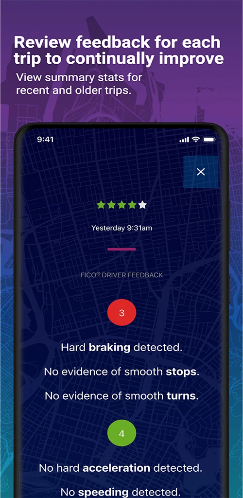 Daily Monitoring: With this app, you can access detailed information about your daily trips, track your FICO® Safe Driving Score, and view a trending chart of your performance, allowing you to stay on top of your driving habits.