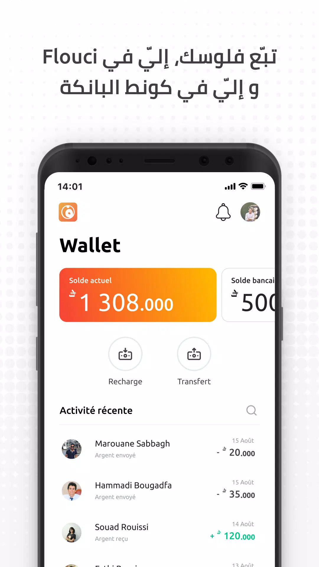 Sending and receiving money with Flouci is easy, cheap, and secure. You can transfer funds to anyone with a Flouci wallet instantly by simply entering their phone number or scanning their QR code. Rest assured that your transactions are protected and efficient with Flouci.