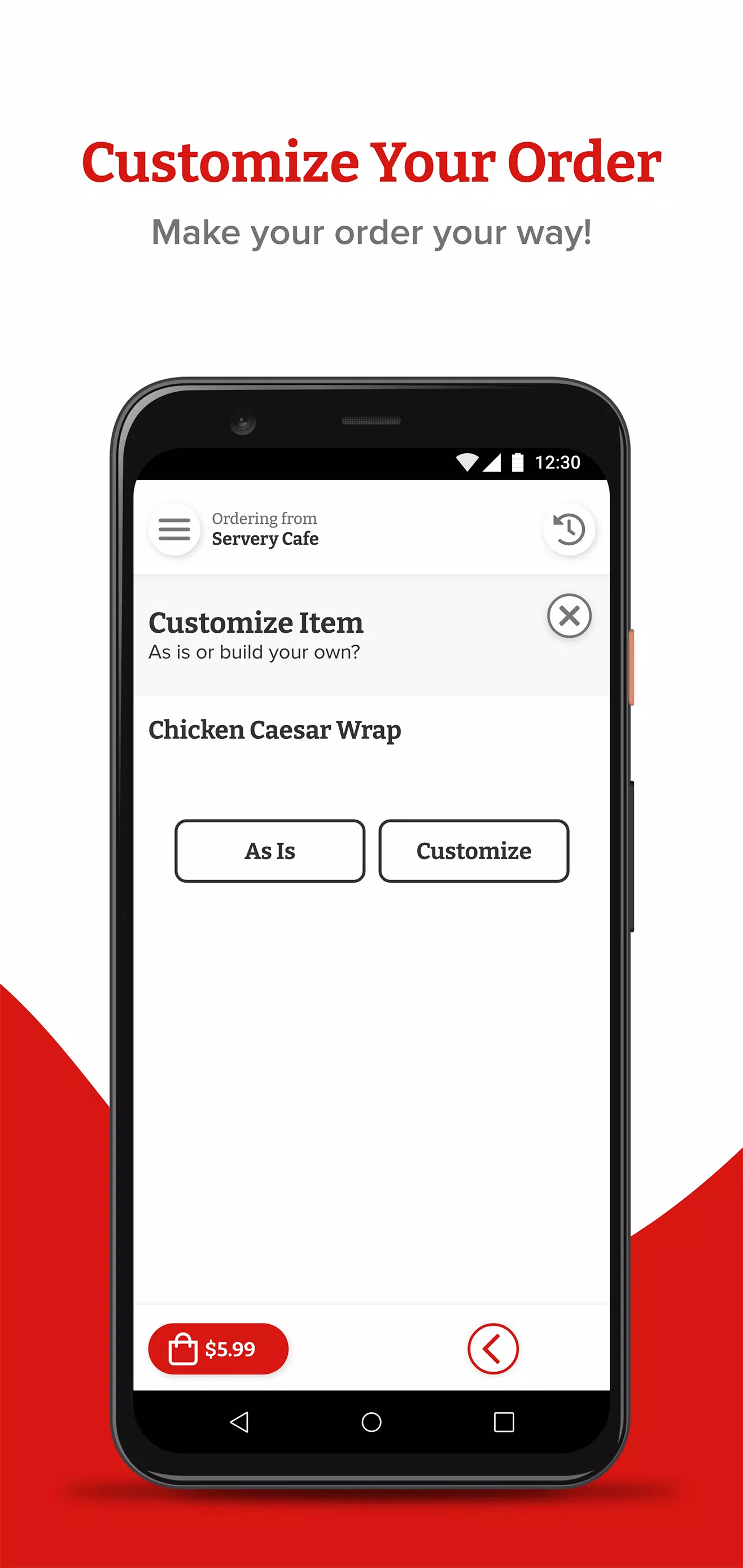 * Customize your order: With Servery, you can tailor your order to perfection by selecting exactly what you want with customizable menus and chef recommendations.