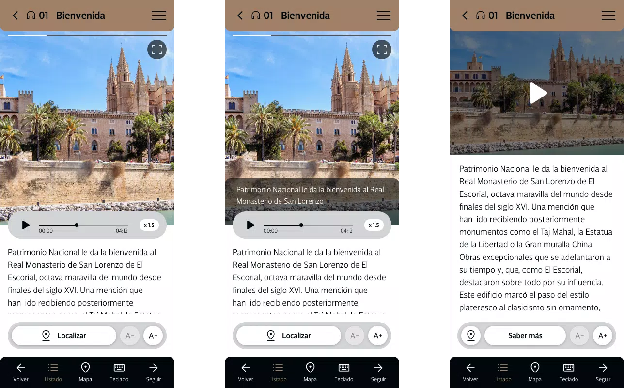 Rich Historical Content: Dive into the past and present of the Almudaina Royal Palace with detailed videos, historical images, and high-resolution photographs.