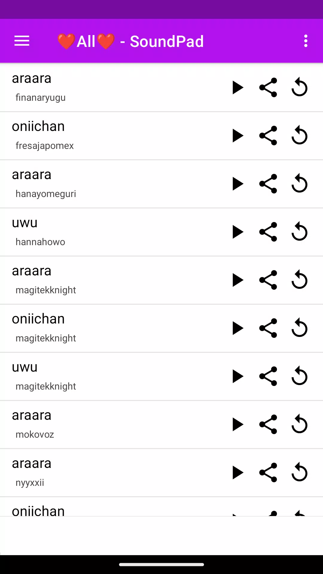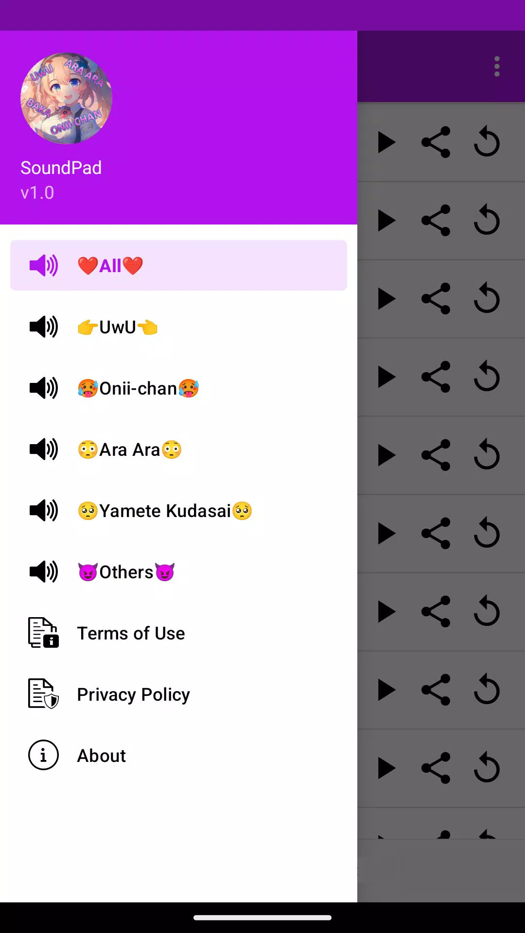 > Sharing capabilities: Onii-Chan Ara Ara Uwu SoundPad allows you to share your favorite sounds with friends and followers on various social media platforms, emails, and text messages. Spread the laughter and joy with just a few clicks.