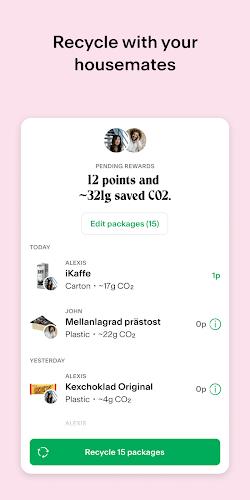 - User-friendly functions such as scanning items for disposal instructions, finding local recycling bins, and earning rewards for each recycled item.
