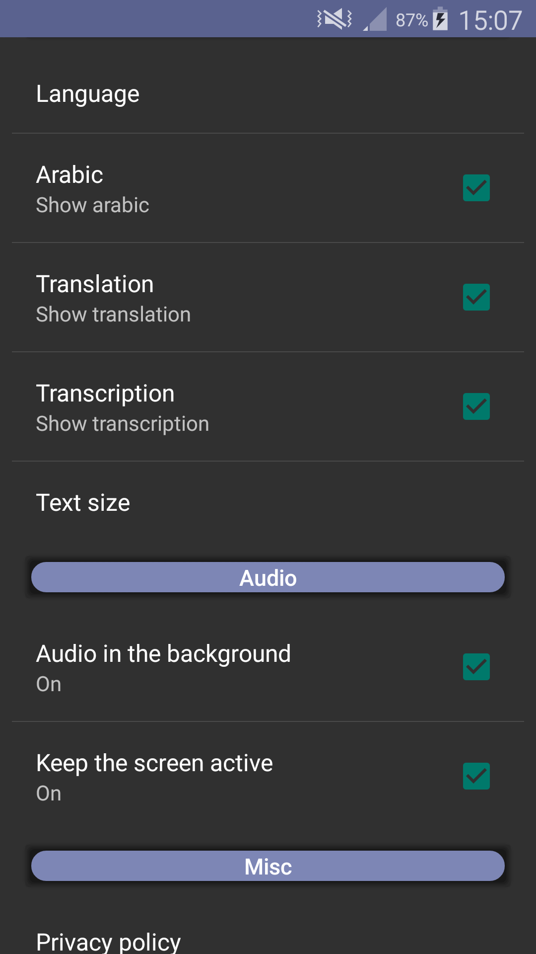 ⭐ Includes the famous Ayat al Kursi verse with translation and transcription options.