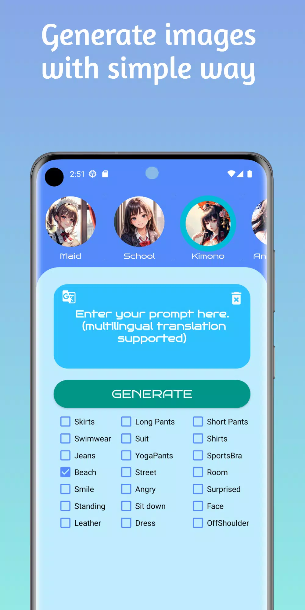 Are you a fan of anime and always dreamed of creating your own characters? With AI Anime, your dreams can now become a reality! This incredible app allows you to simply input text prompts and watch as it generates a unique and amazing anime image just for you. Whether you have a specific style in mind or just want to see what AI Anime comes up with, the possibilities are endless. Plus, with the option to save your creations, you can keep a collection of your favorite anime characters right at your fingertips. Experience the magic of AI Beauty and start creating your perfect anime character today!