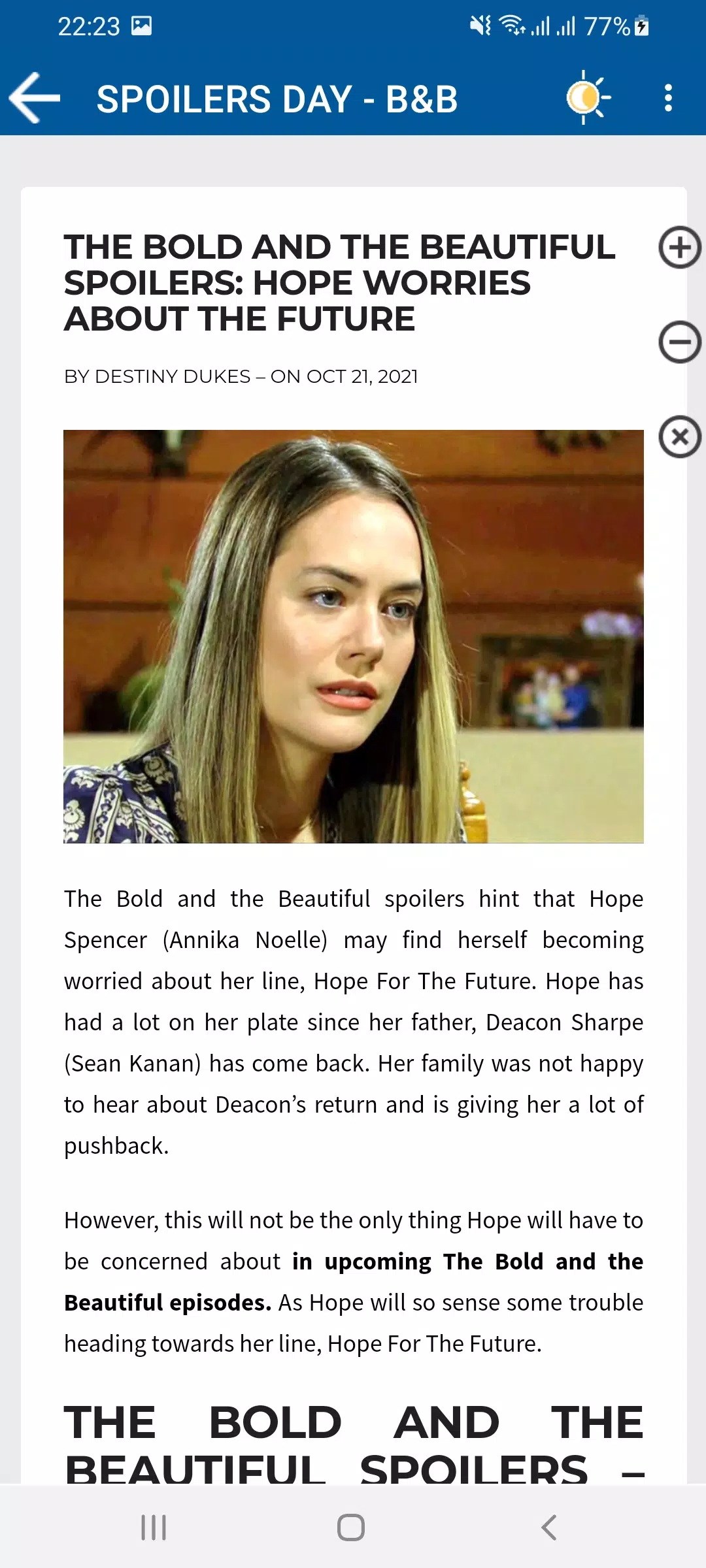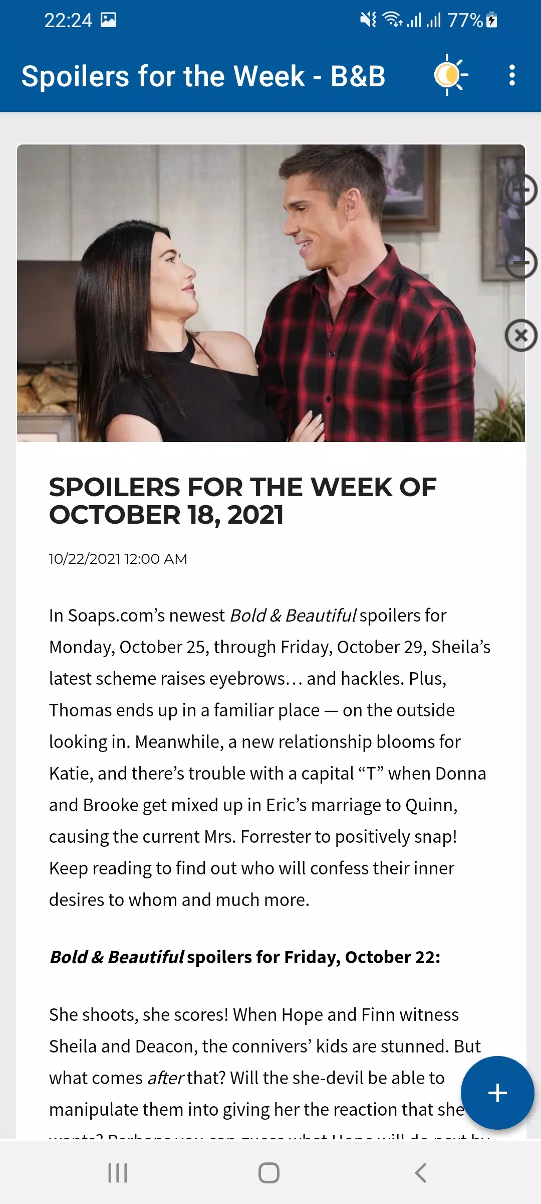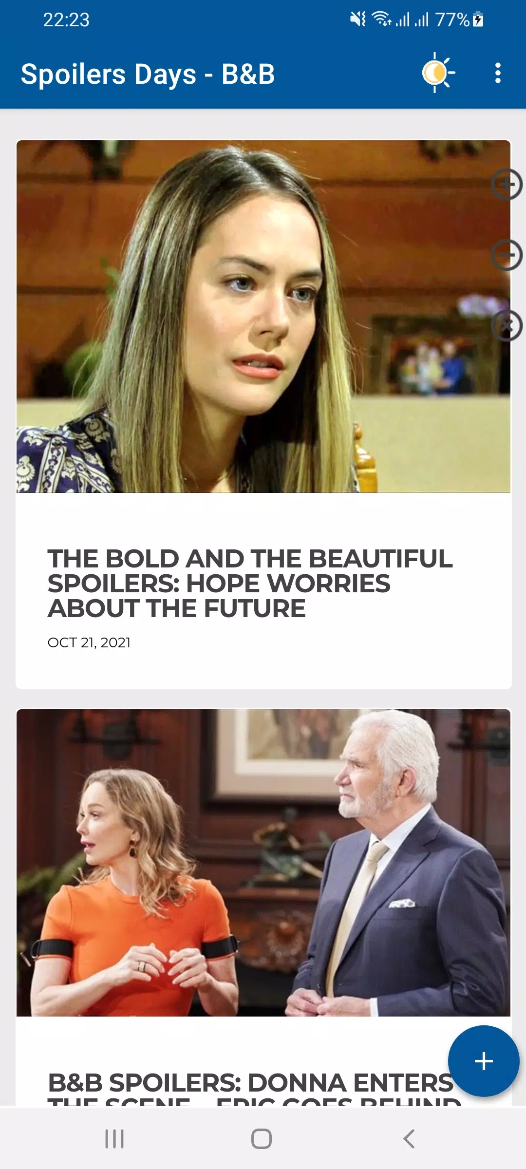 Stay in the loop with all the drama, twists, and turns of The Bold and the Beautiful with the Bold and Beautiful Spoilers app. Customize your reading experience, stay ahead of the game with daily and weekly spoilers, and catch up on missed episodes with detailed recaps. Don't miss out on the latest casting news, updates, and gossip surrounding your favorite soap opera. Download the app now to stay connected to the glamorous world of the Los Angeles fashion scene.