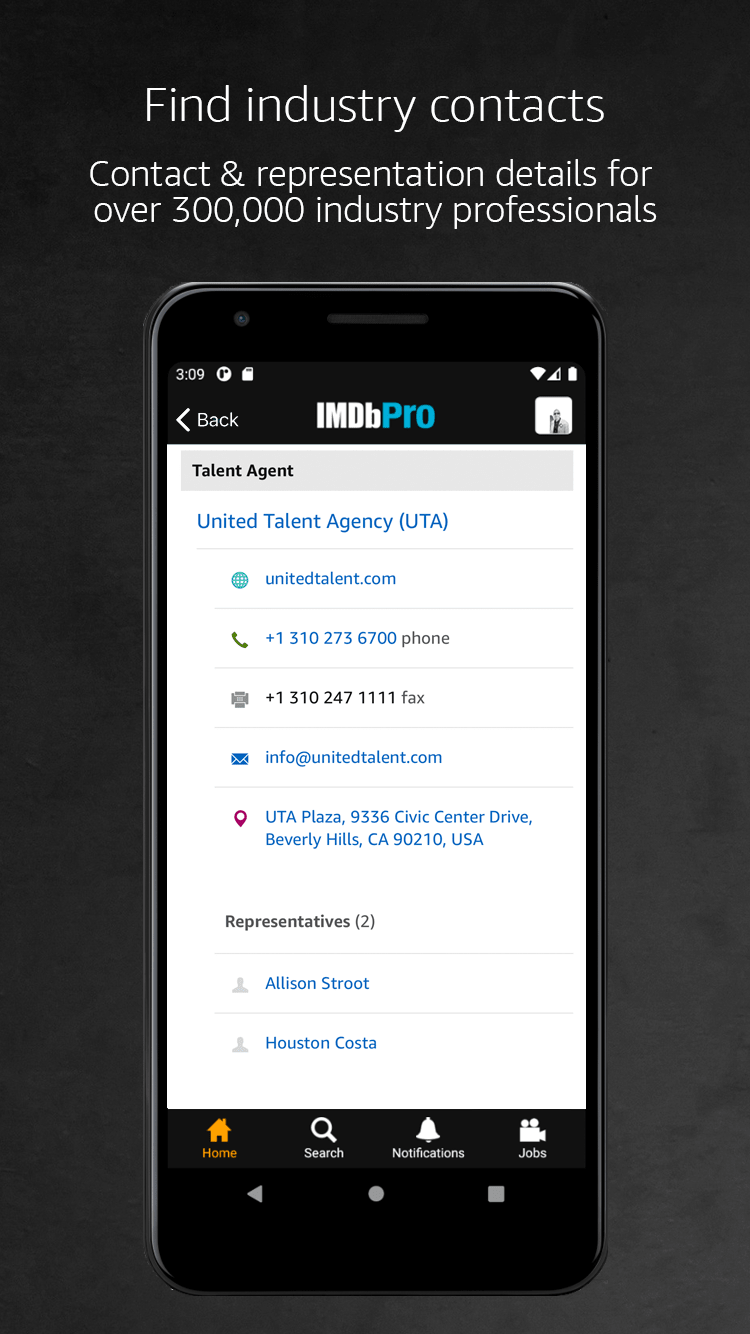 ⭐ Contact Information: Easily obtain contact and representation details for industry insiders, allowing you to connect with the right people directly from your device.