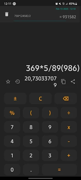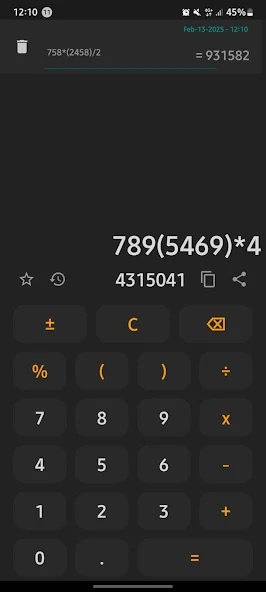 - History Tracking: The app keeps a record of previous calculations, allowing users to easily reference and reuse past results.