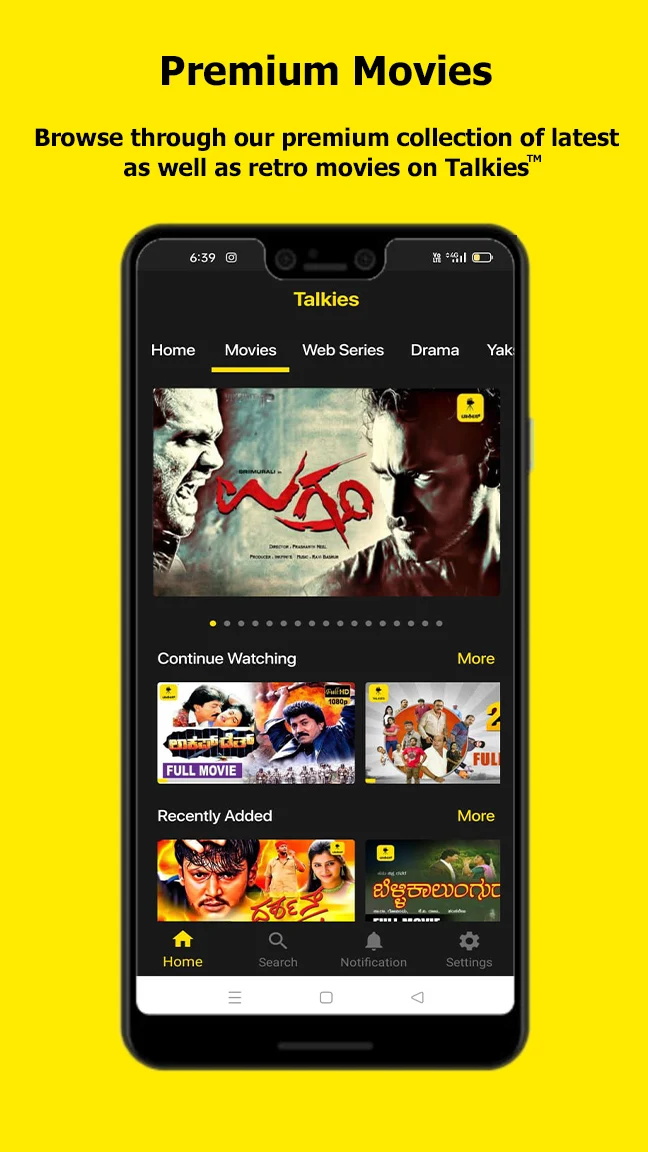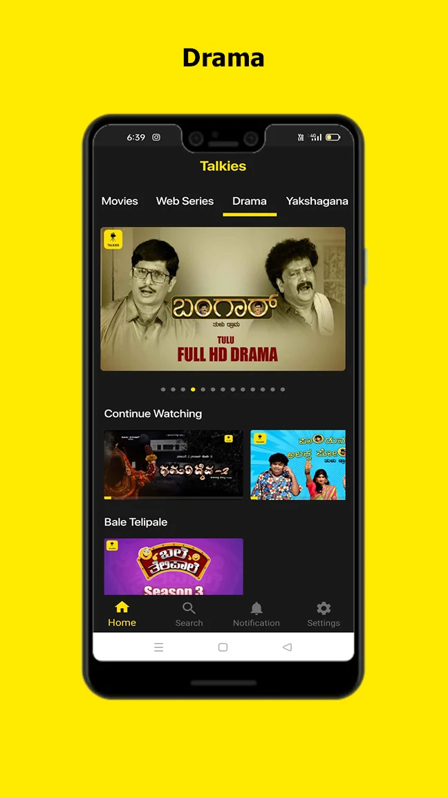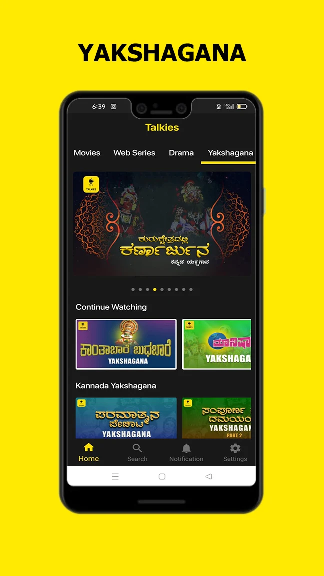 * Ad-Free Streaming: Enjoy uninterrupted viewing of your favorite Movies, Web Series, Talkies Originals, Dramas, TV shows, and Yakshagana without any ads.