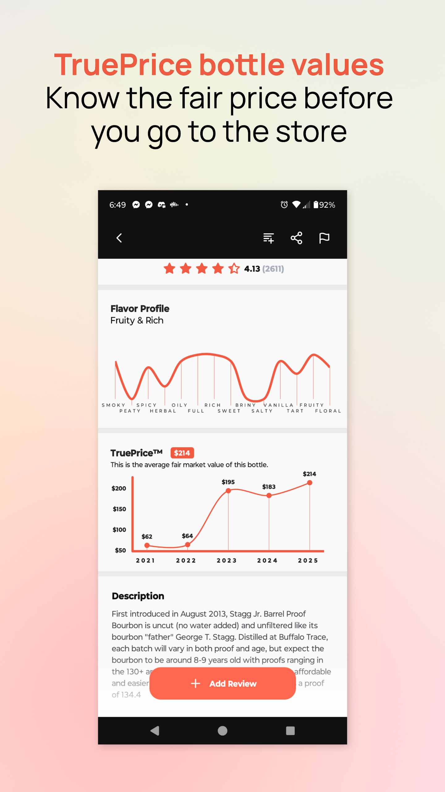 - TruePrice Feature: Gain insights into fair market prices for bottles, along with estimated values for your entire collection based on any lists you create.