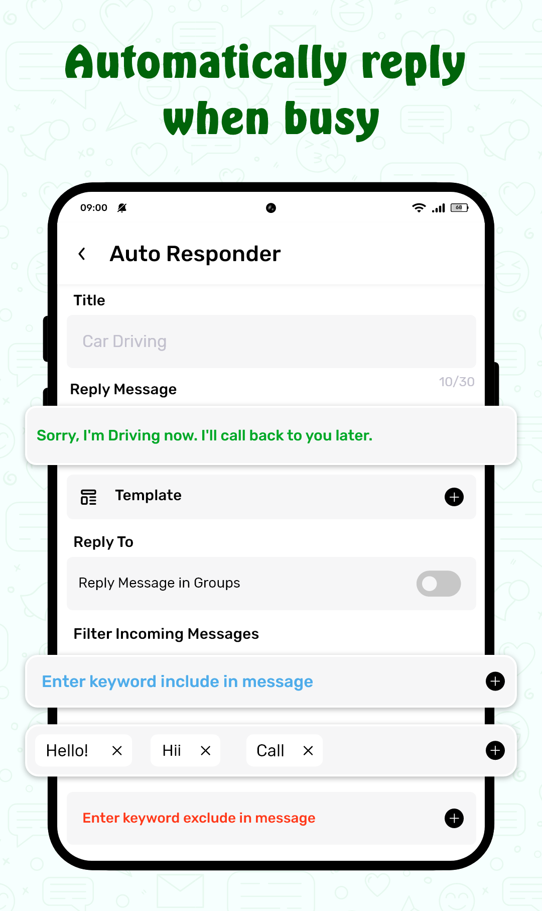 - Enable "Reply message in groups" to respond within group chats using the Smart Auto Responder feature.