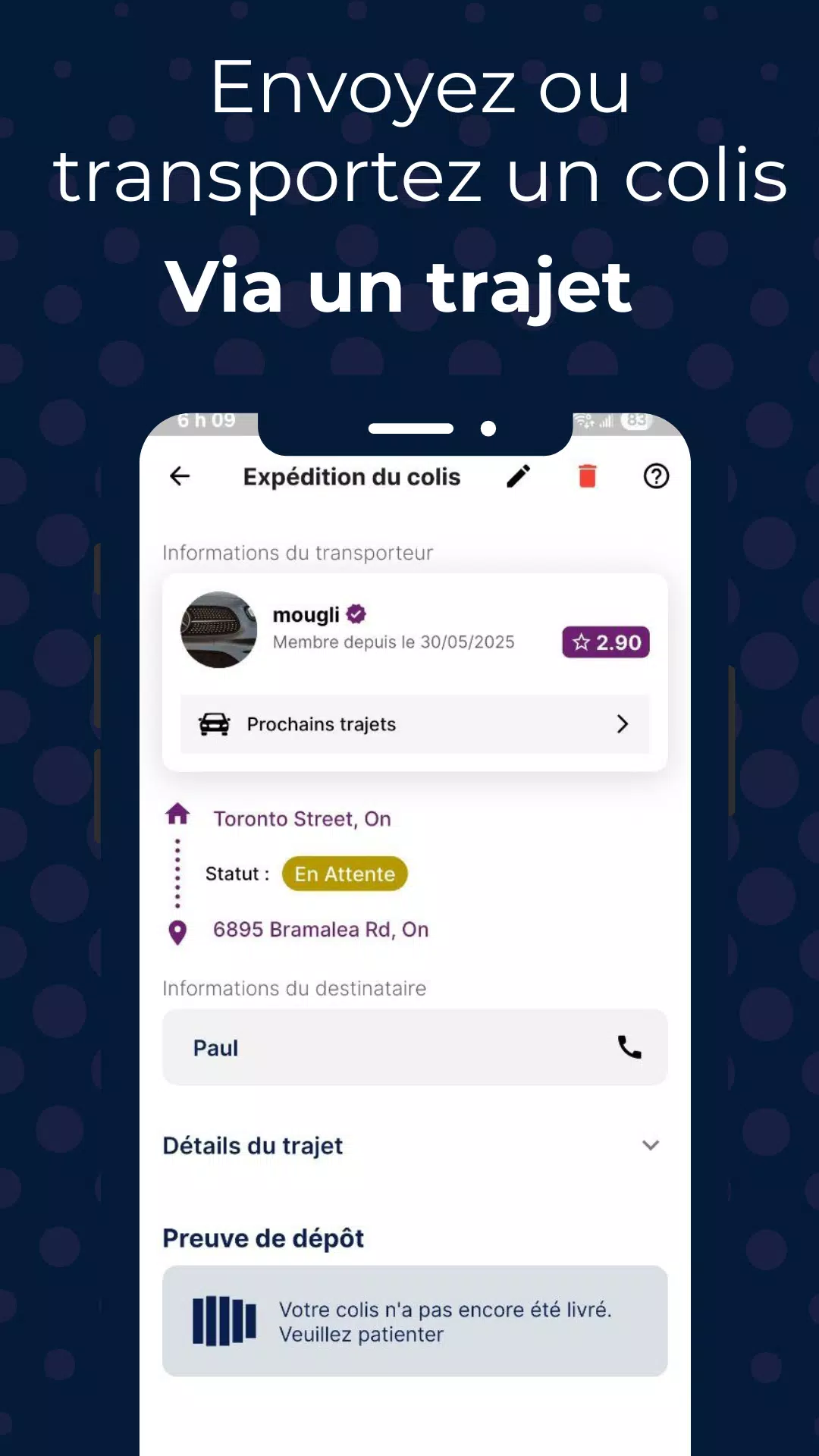 Driv Covoiturage is the new go-to app for sharing rides and sending packages across Canada. This Canadian application is reshaping daily commuting and parcel delivery by connecting you with reliable drivers and passengers nationwide. From urban to intercity carpooling, Driv lets you join a community of trustworthy individuals and conveniently transport small items at a lower cost, quickly and safely. With features like ride-sharing in your area, sending packages on scheduled trips, identity verification for security, and user reviews for peace of mind, Driv makes sustainable and affordable travel a breeze. Join the smart carpooling movement in Canada with Driv today!