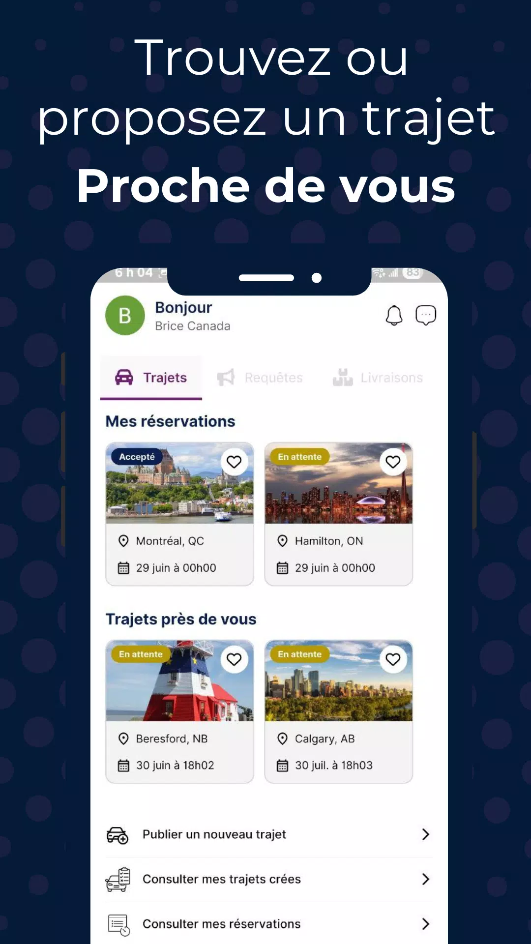 > Connect with a community of reliable drivers and passengers across Canada for urban and intercity ridesharing.
