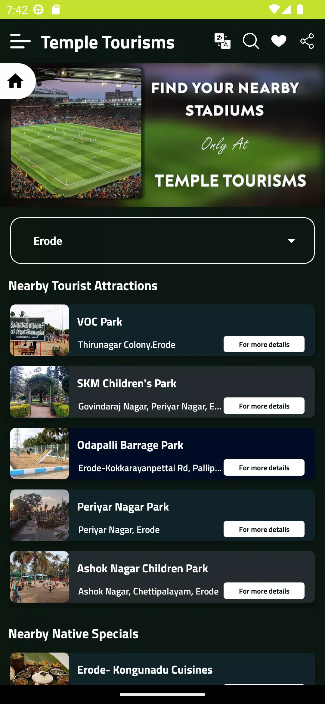 - Access to over -000 temples and tourist places in Tamil Nadu.