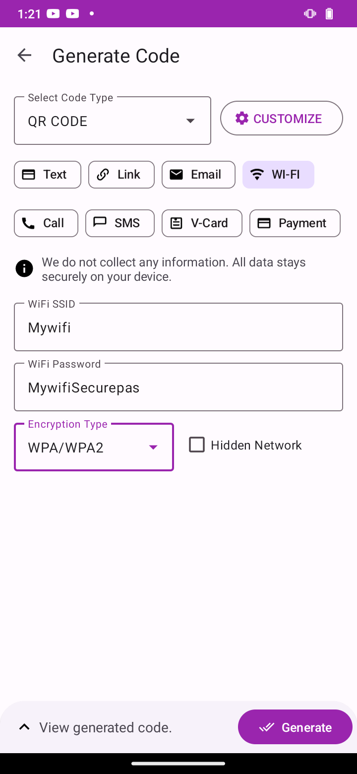 One-Tap Wi-Fi Connect: Generate or scan Wi-Fi QR codes for quick and easy network connection.