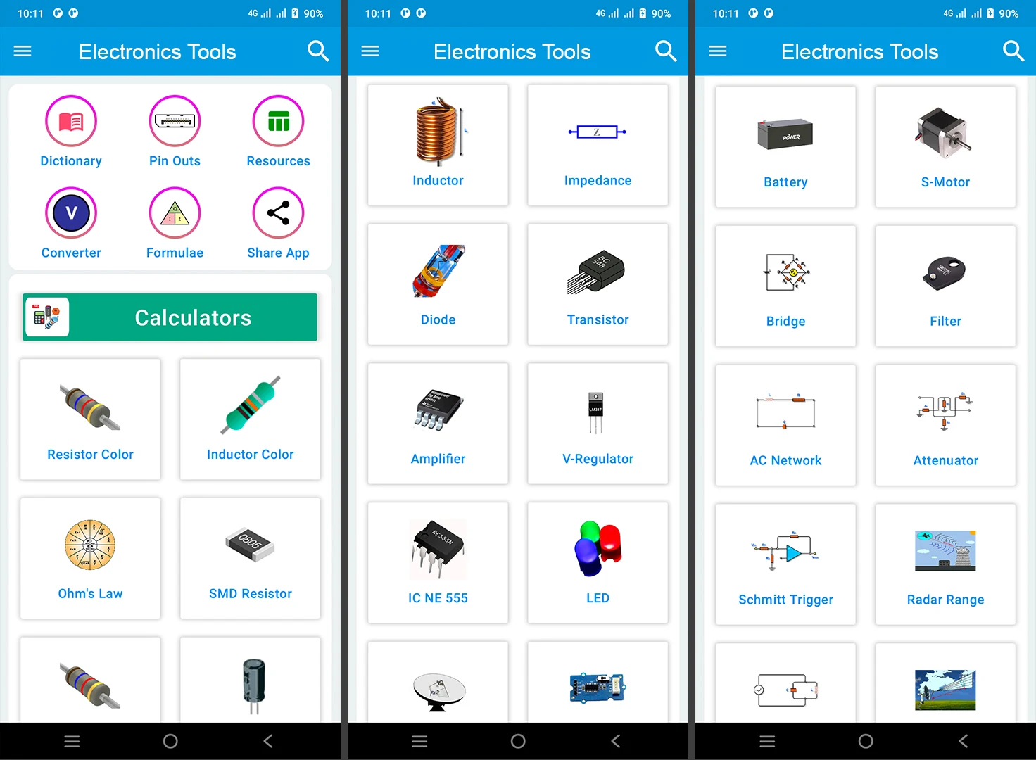 Whether you are an engineering student grappling with circuit calculations, a DIY enthusiast working on electronic projects, or a seasoned practitioner in the field of electronics, this app offers invaluable tools to streamline your work. With features like resistor color code calculators, circuit images, pinout references, conversion tables, and an extensive electronics dictionary, the app is a must-have for anyone looking to enhance their understanding and efficiency when dealing with electronic circuits. Streamline your calculations, access crucial resources, and expand your knowledge with the Electronics Tools: ElectroCalc app.