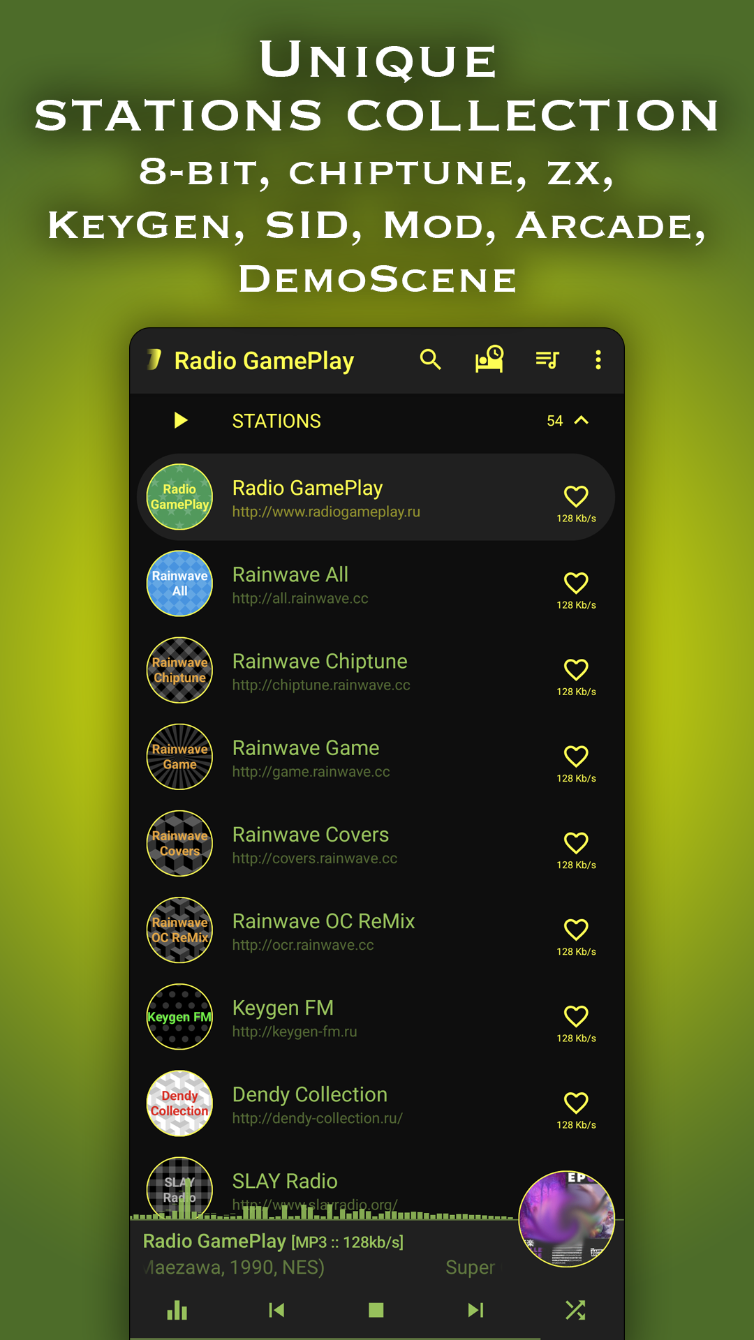 Customize Your Playlist: Experiment with adding your own stations to curate a personalized playlist that perfectly represents your favorite chiptune tracks and remixes.