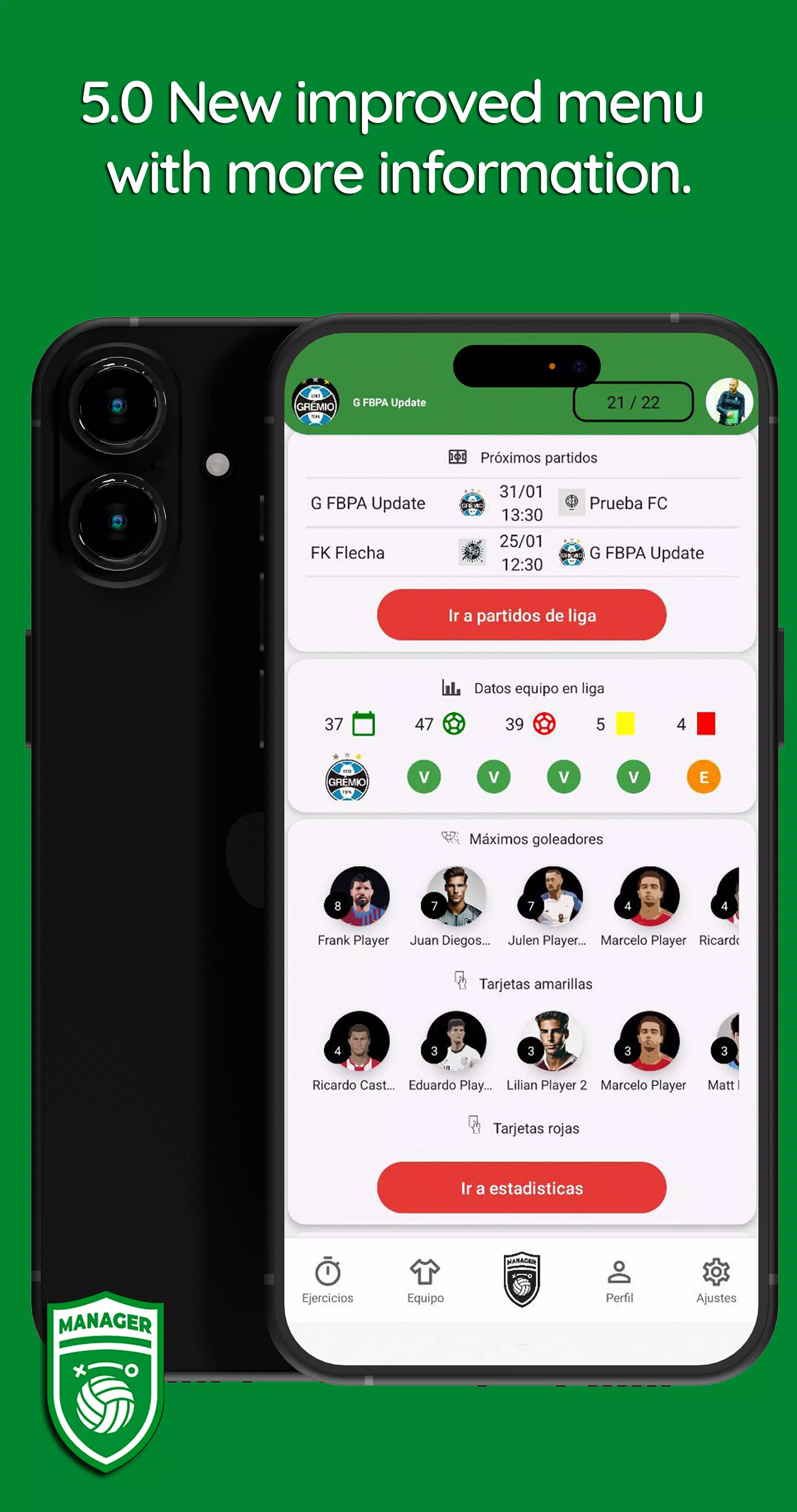 Take advantage of Gol Manager's exercise editor (available in the premium version) to create customized training sessions tailored to your team's needs. This tool allows you to design specific drills and exercises to improve skills and tactics.