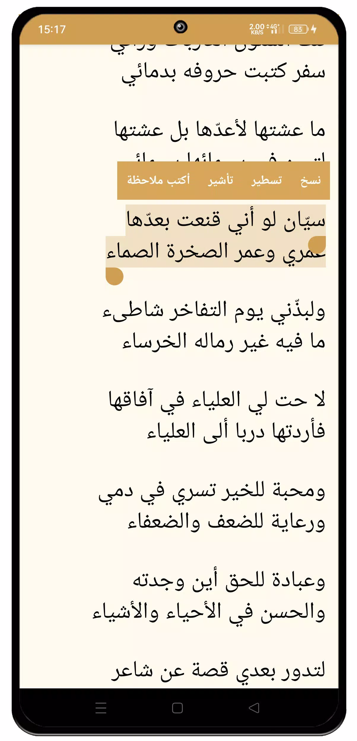 ⭐ Set Notifications: Keep yourself inspired by setting periodic notifications for selected poems, ensuring that you never miss out on the beauty of Arabic poetry.