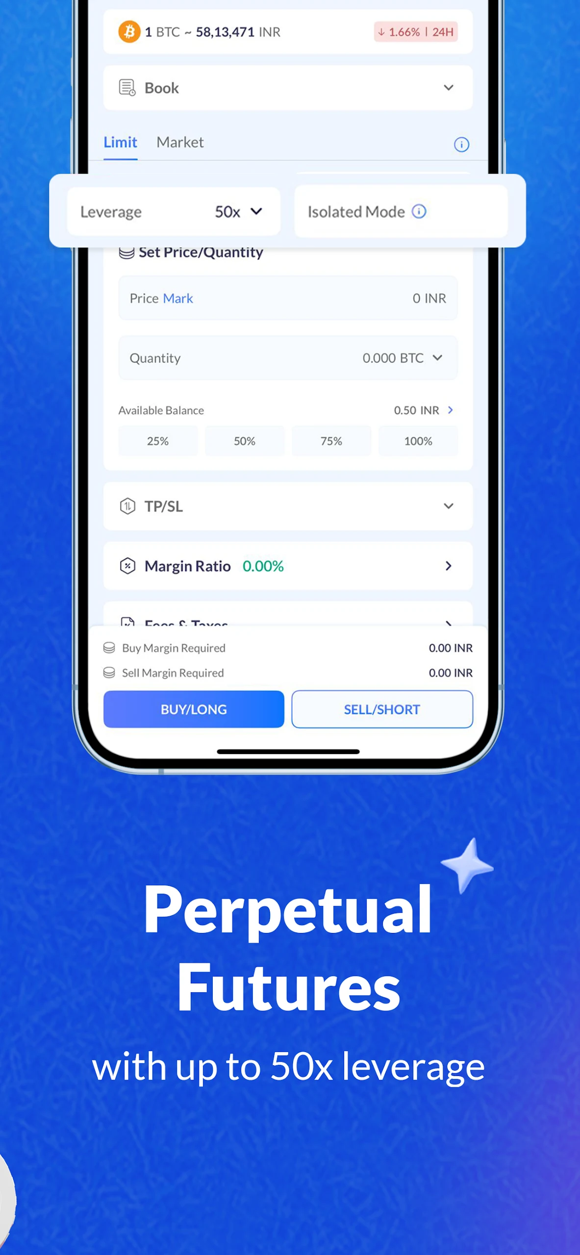 ⭐ Perpetual Futures: Trading with up to 50x leverage on INR pairs for experienced traders.