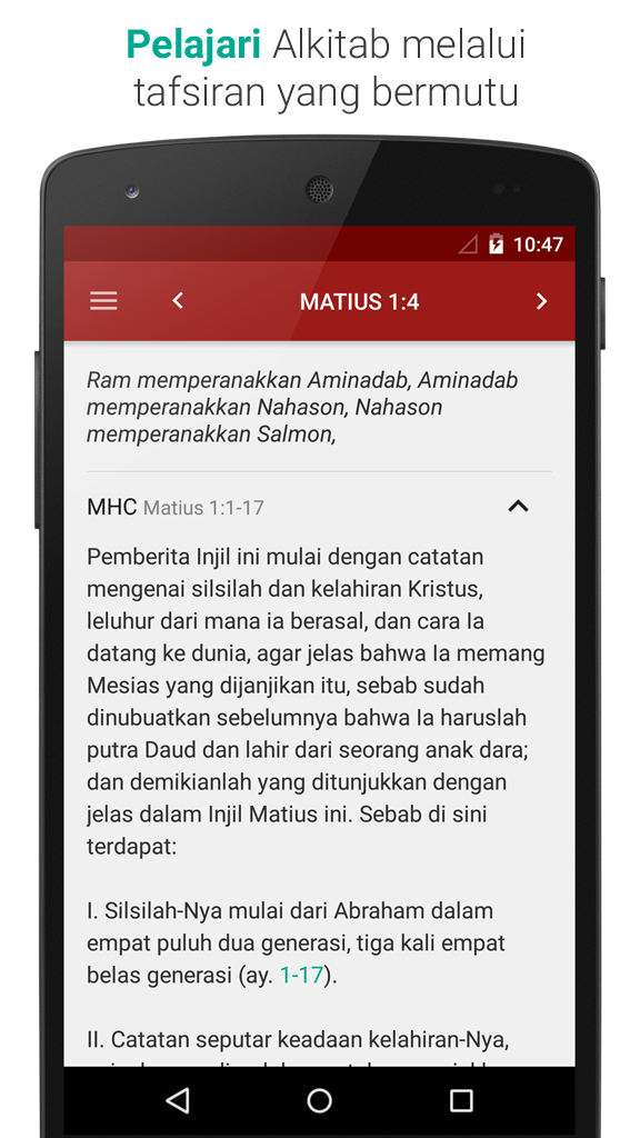In conclusion, the Tafsiran app offers a comprehensive and user-friendly platform for exploring Bible verses through a wide range of reliable commentaries. With its offline accessibility, integrated features, and diverse perspectives, this app provides a valuable resource for individuals seeking a deeper understanding of the Scriptures. Whether you are a seasoned scholar or a casual reader, the Tafsiran app is a versatile tool that facilitates meaningful engagement with the Word of God, enriching your spiritual journey and enhancing your study experience.