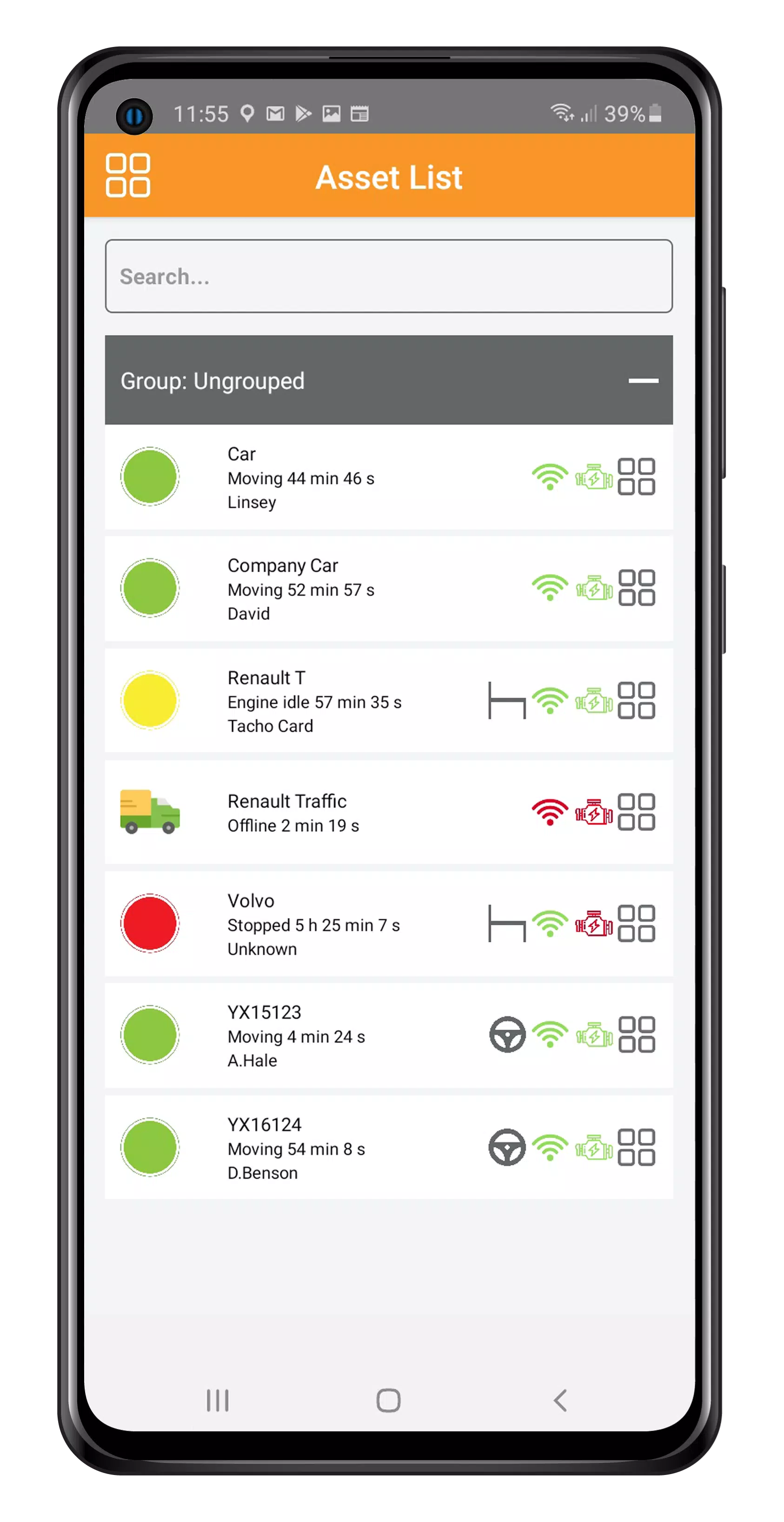 Take advantage of the Asset List to access detailed information about your vehicles, including statuses, locations, sensor data, tachograph mode, and driver details, ensuring you have all the necessary information at your fingertips.