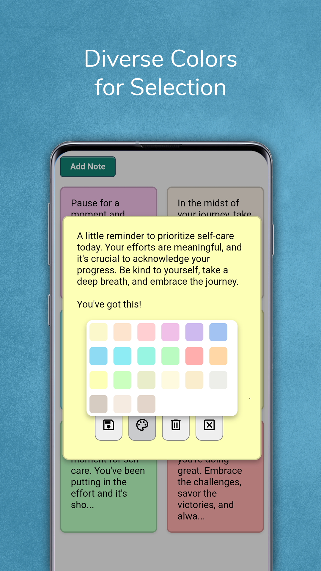 > Vibrant notes: With a diverse color palette, our app allows you to create visually appealing and engaging notes that stand out.