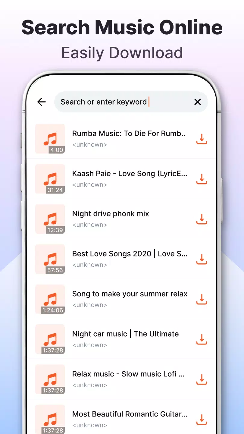Introducing "Download Music Mp3", your go-to app for all your music needs! This music downloader and player offers a wide range of songs available for free download and offline playback. With a user-friendly interface, you can easily search for music by title, artist, genre, or album. Whether you're into pop, rock, or hip-hop, you'll find something for your taste. Enjoy streaming online music or save your favorite tracks to your device for on-the-go listening. Share music with friends, create playlists, and discover new tunes with this smart music offline player. Download "Download Music Mp3" now and enjoy endless hours of musical bliss!