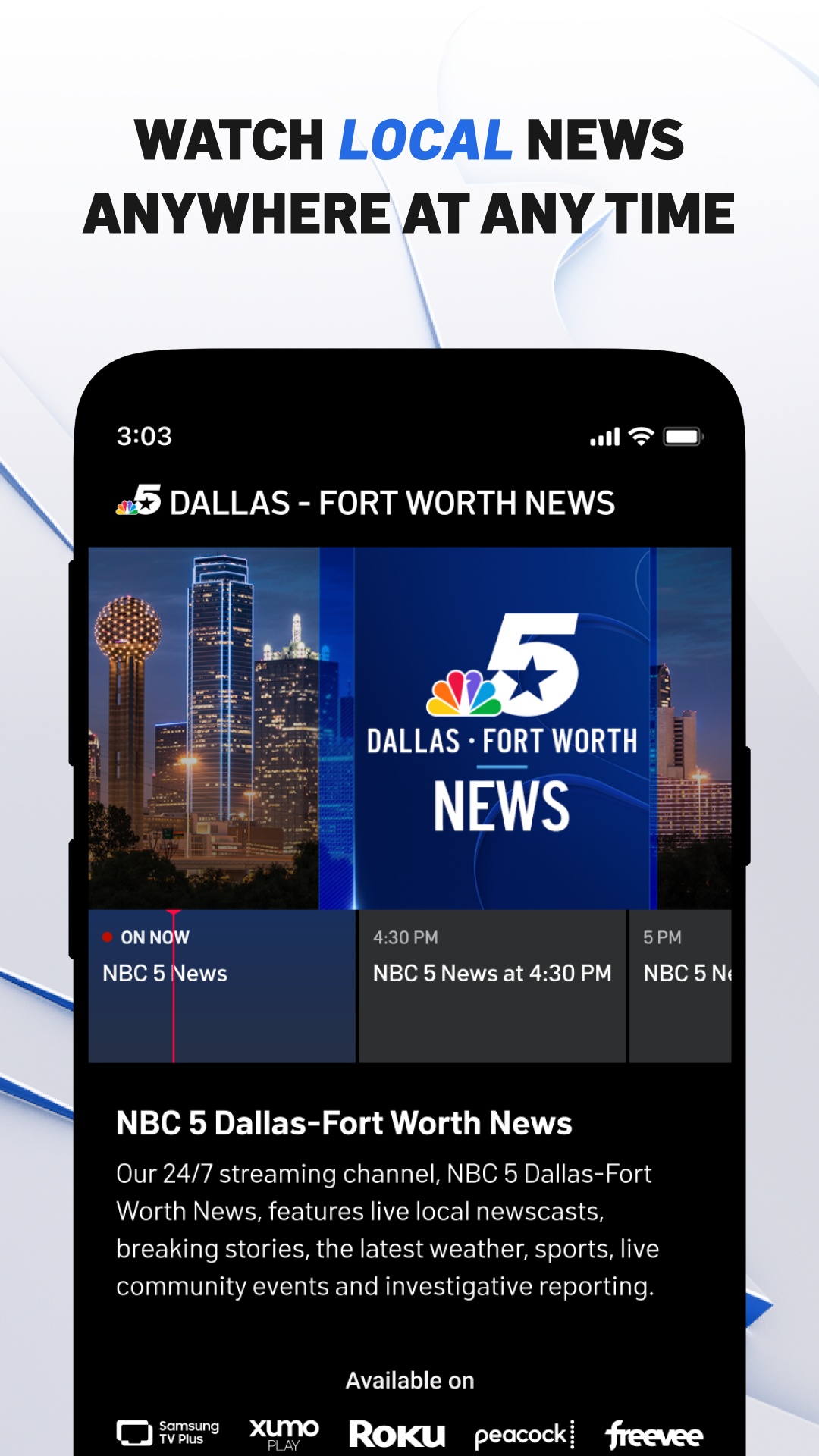 * Watch live broadcasts of NBC 5 DFW newscasts for real-time updates