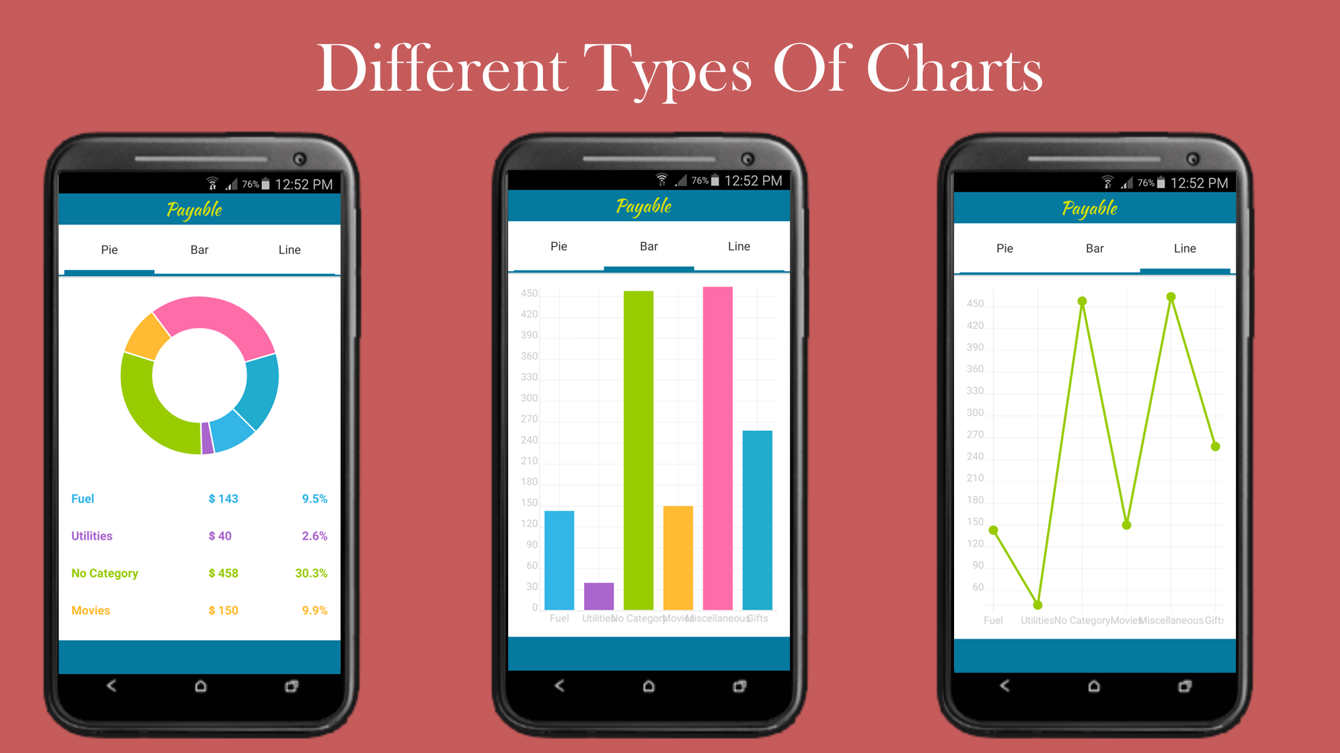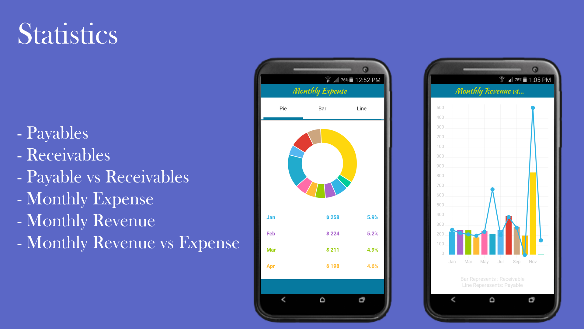 Detailed Statistics: The app offers detailed statistics in the form of pie and bar charts, giving users insights into their spending habits and bill payments.