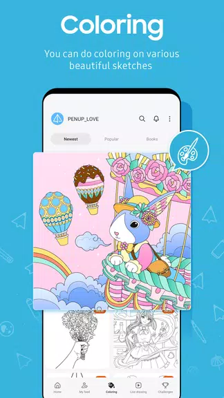 > A Variety of Drawing Features: PENUP offers a wide array of drawing features to cater to all skill levels. From coloring book pages to templates, Live Drawing, and Photo Drawing, there is something for everyone to enjoy and improve their skills.