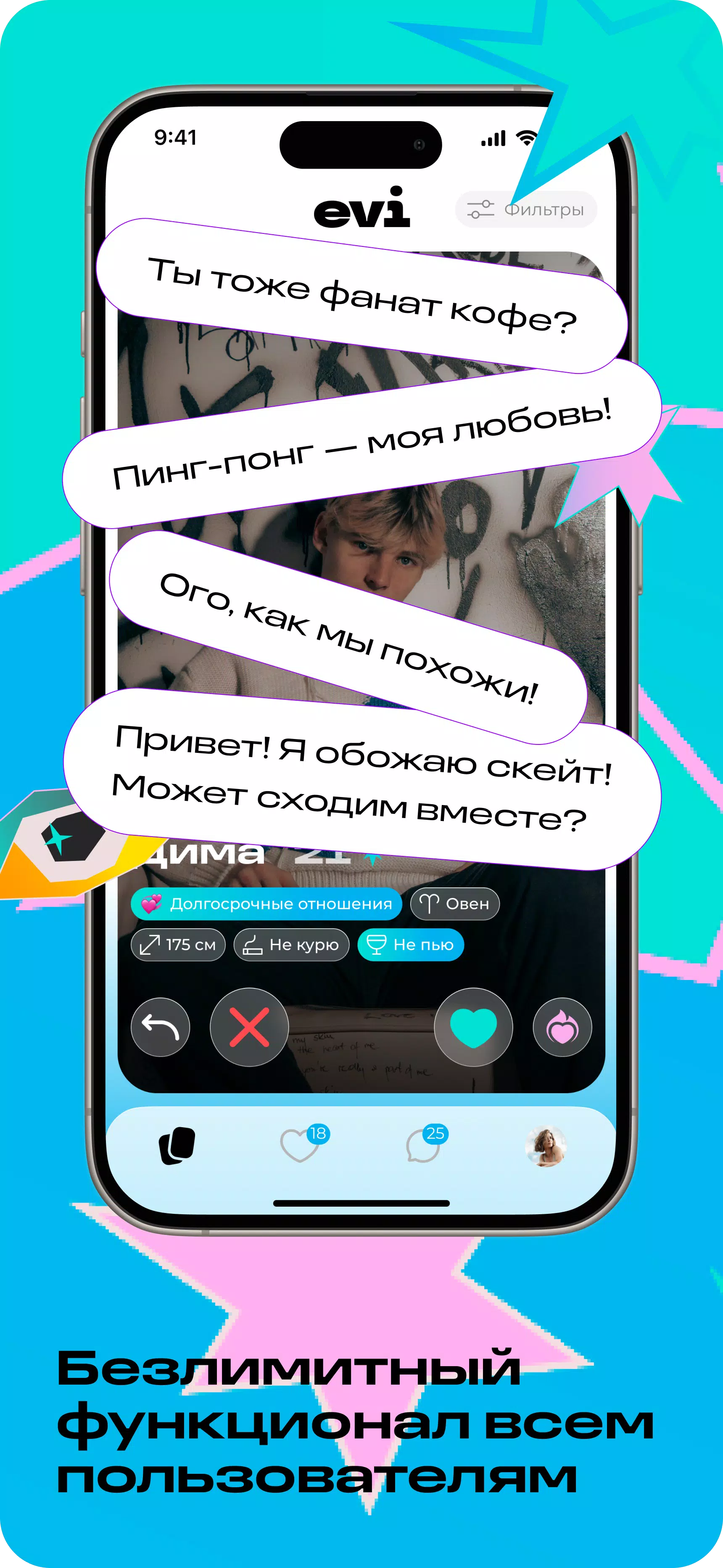 Looking for genuine connections and real emotions in the world of dating? Say hello to Evi - твои лучшие знакомства, the dating application that prioritizes sincere communication in a safe and convenient environment. With Evi, you can forget about the stress of planning perfect dates, as our personal assistant will help you create unforgettable moments tailored to your preferences. Our focus is on fostering real connections, sharing common interests, and building friendships within a friendly community of like-minded individuals. Safety is our top priority, with strict profile verification and round-the-clock support. Join Evi today to start your journey into the world of meaningful relationships and exciting adventures. Evi is not just a dating app - it's your trusted partner in the quest for love and genuine connections. Experience the Evi difference today!