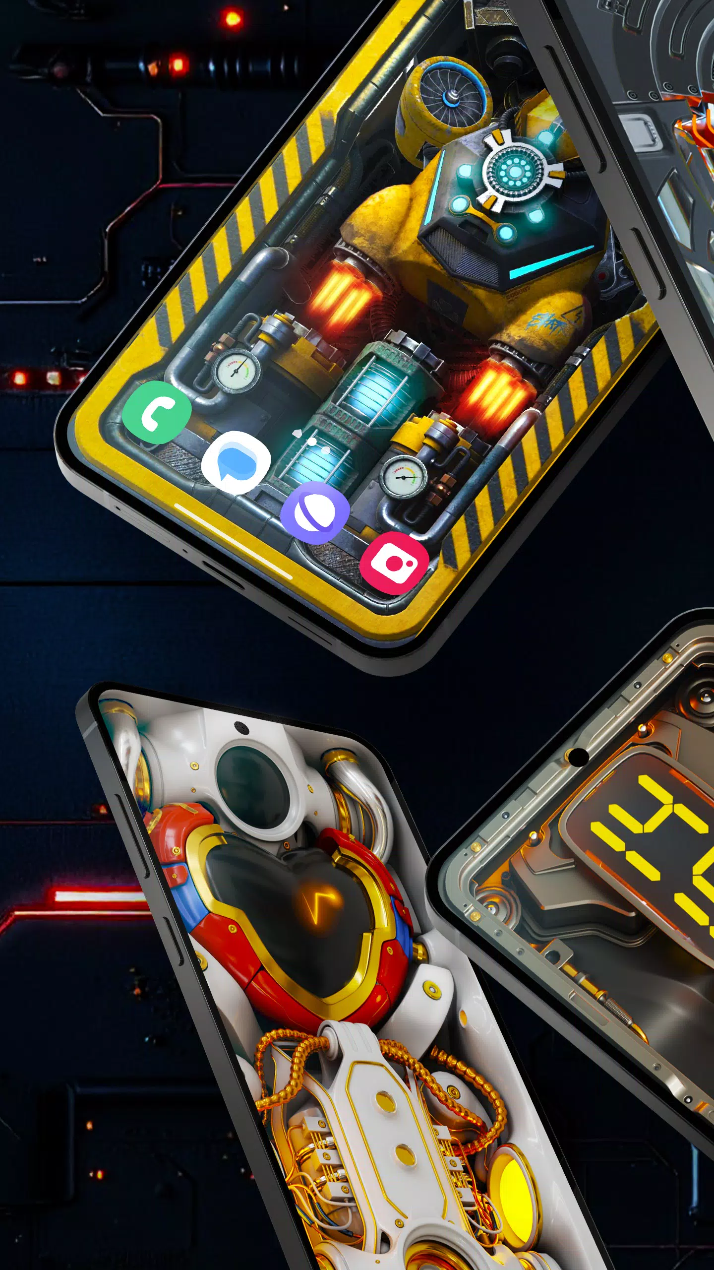 - Advanced 3D Live Wallpaper Effects: Experience realistic depth and motion with high-tech mechanical animations.
