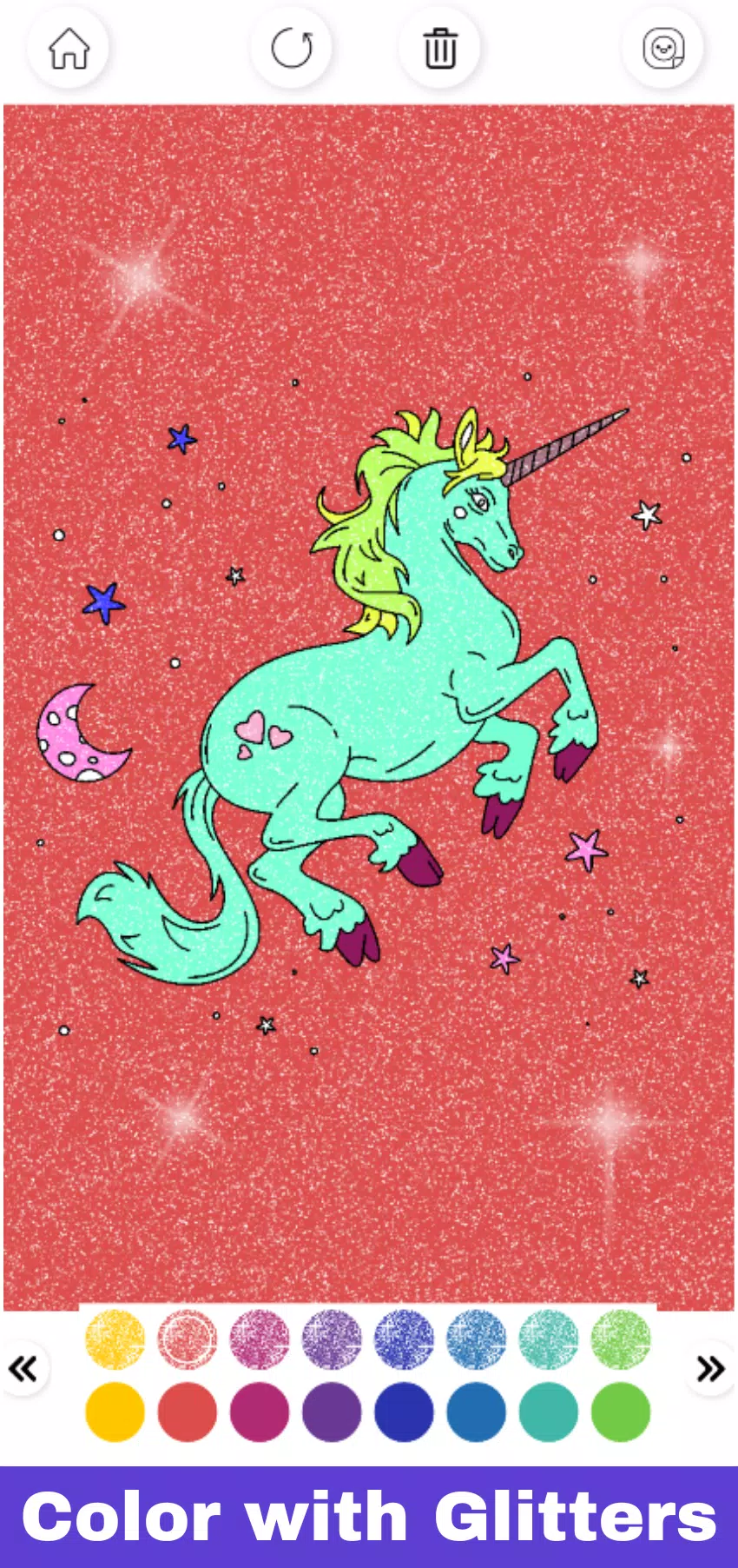 - Beautiful and Magical Illustrations: Our app features stunning illustrations of horses and unicorns, enhanced with dazzling glitter effects to make your artwork sparkle and shine.