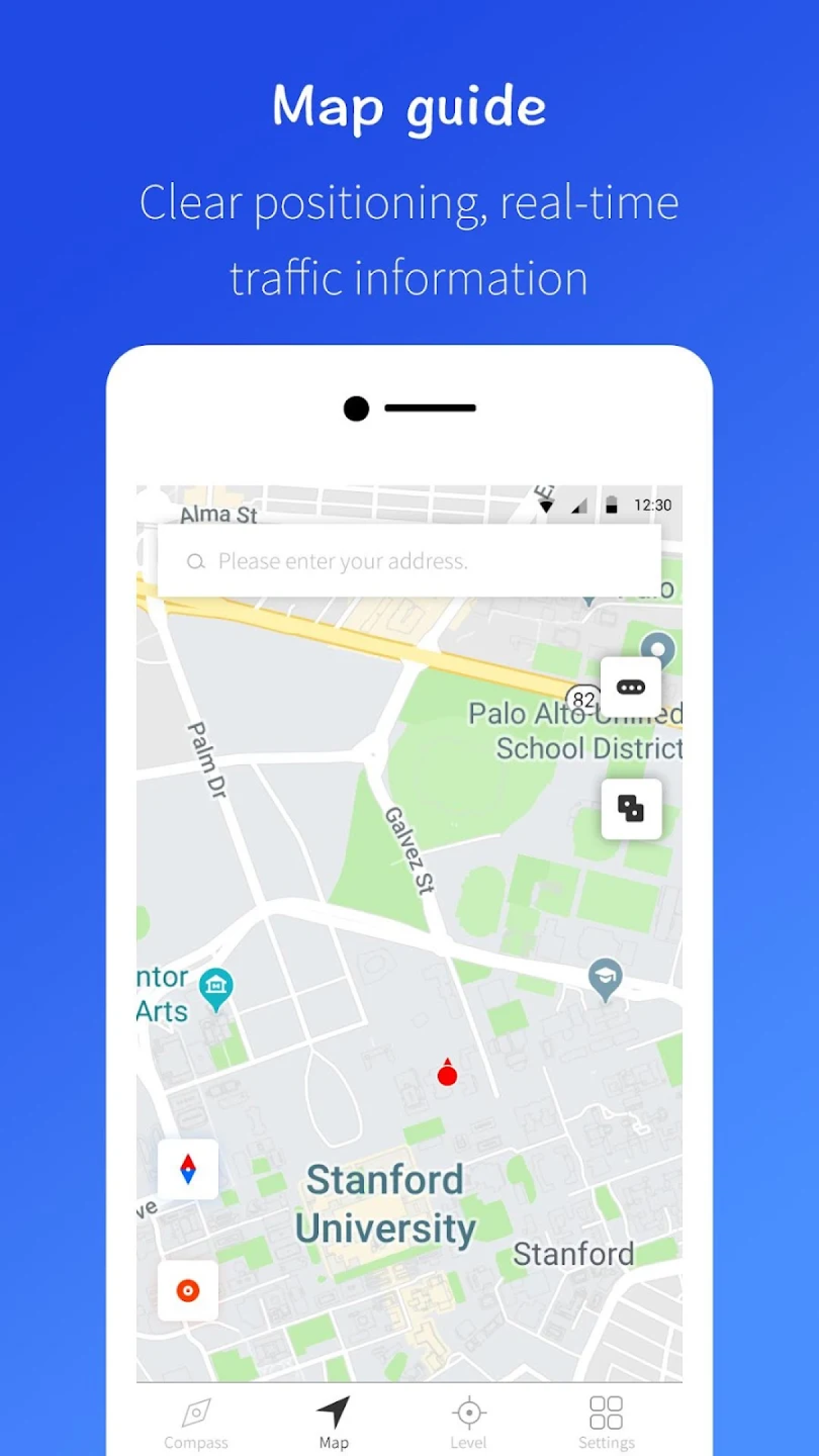 1. Compass - Level & GPS & Map includes a digital compass that shows accurate directions in real time.