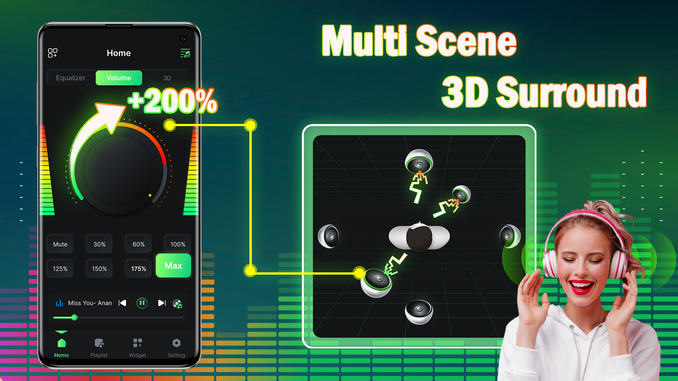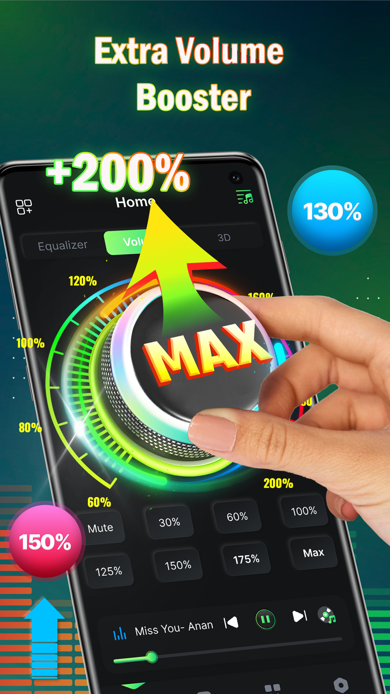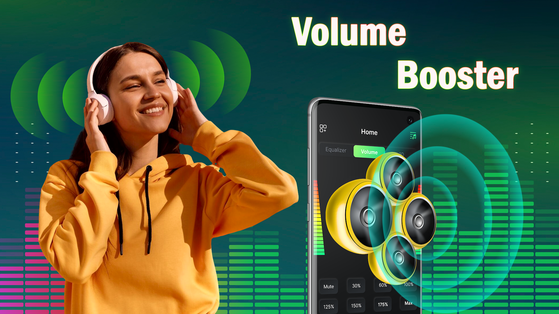 Enhance your audio experience with the revolutionary Volume Booster - EQ Amplifier app. Say goodbye to frustratingly low sound levels and limited equalizer controls on your device. This powerful application transforms your smartphone or tablet into a compact audio amplifier with a 10-band equalizer and over 20 preset effects, including Bass Boost and 3D Virtualizer. Easily boost volume directly from your home screen using a widget, enjoy stunning visual sound spectrum display, and immerse yourself in stereo surround sound effects. Elevate your music, movies, games, and audiobooks with up to 200% increased audio levels without compromising quality. Try Volume Booster now and transform your smart device into a mini speaker!