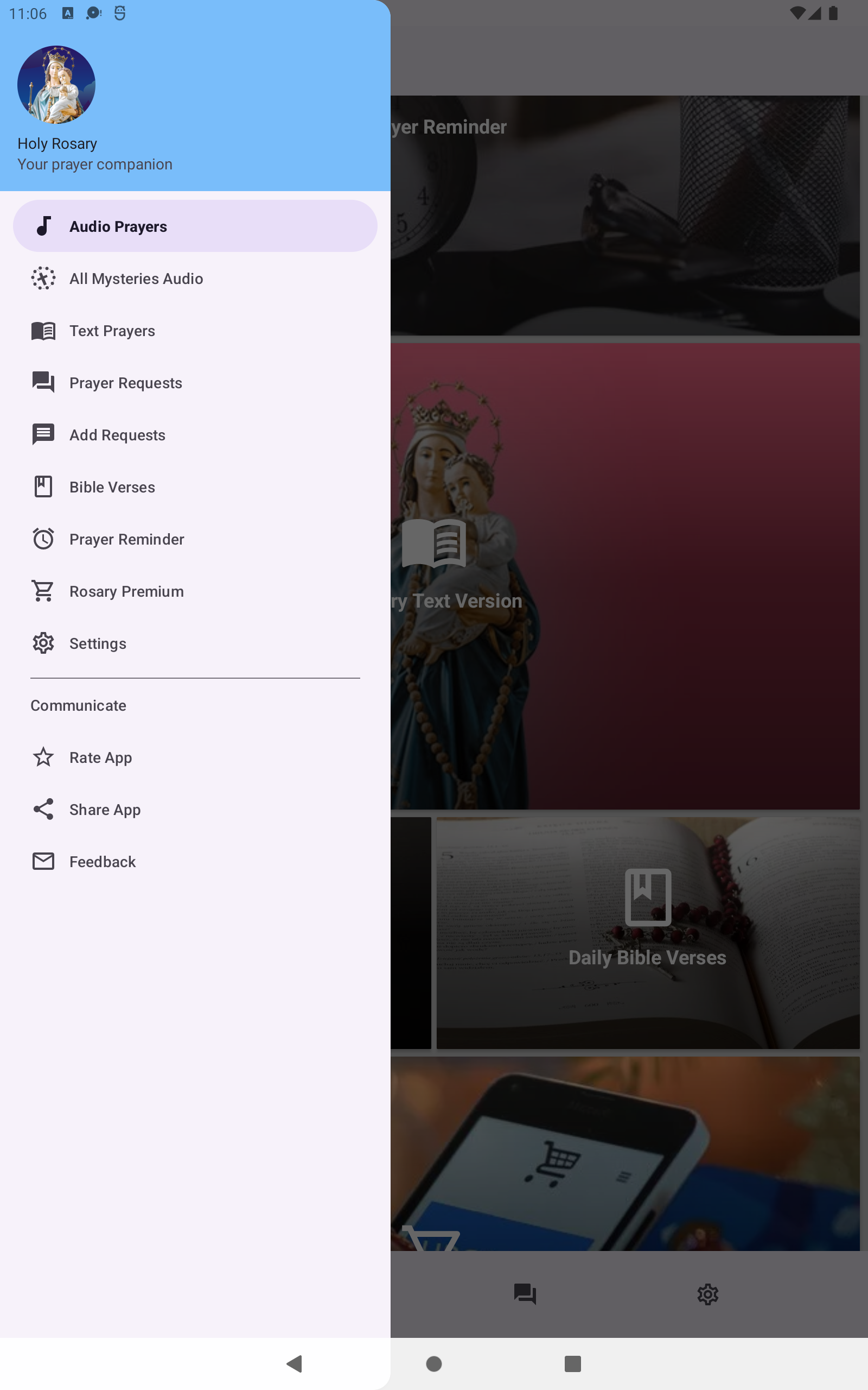 Rosary Audio is a mobile app that helps users pray the Rosary through guided audio tracks and clear instructions. The app includes traditional Rosary prayers, mysteries, and meditations to support daily spiritual practice. Rosary Audio provides a simple interface, allowing users to listen hands-free while praying at home, during travel, or in quiet reflection. The app also offers options for different sets of mysteries and reminders to help users maintain a consistent routine. Overall, Rosary Audio is ideal for individuals seeking a peaceful and convenient way to pray the Rosary anywhere.