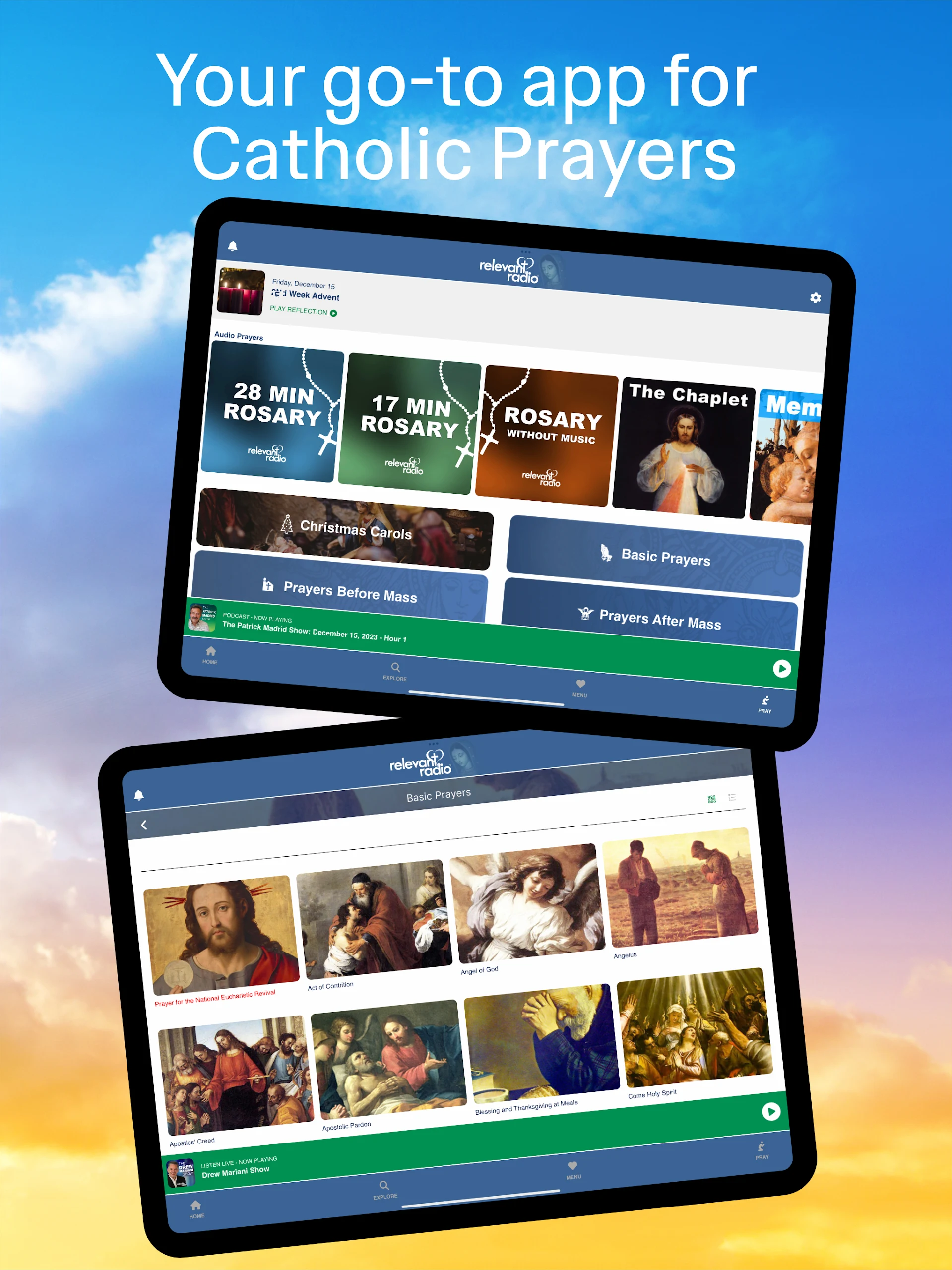 1. Use the audio guidance in Relevant Radio Catholic Rosary to follow along and maintain focus during prayer.