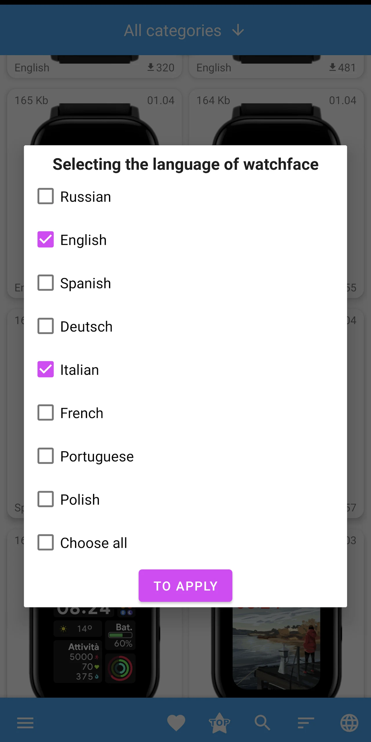 1. Browse different categories in Amazfit GTS 2 WatchFaces to find a style that suits your activity or outfit.