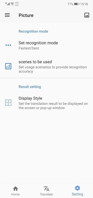 User-Friendly Interface: The app is simple to navigate — capture or upload text and get translations quickly without complex steps.