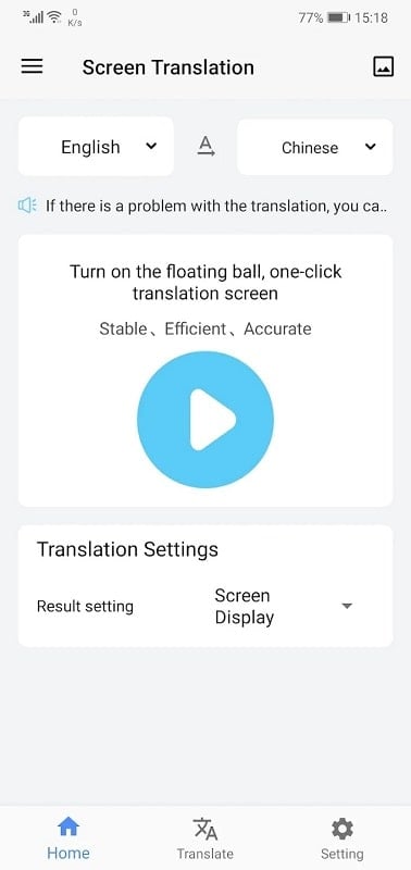 Screen Translation: The app allows real-time translation of text visible on your device screen, including apps, games, and websites.