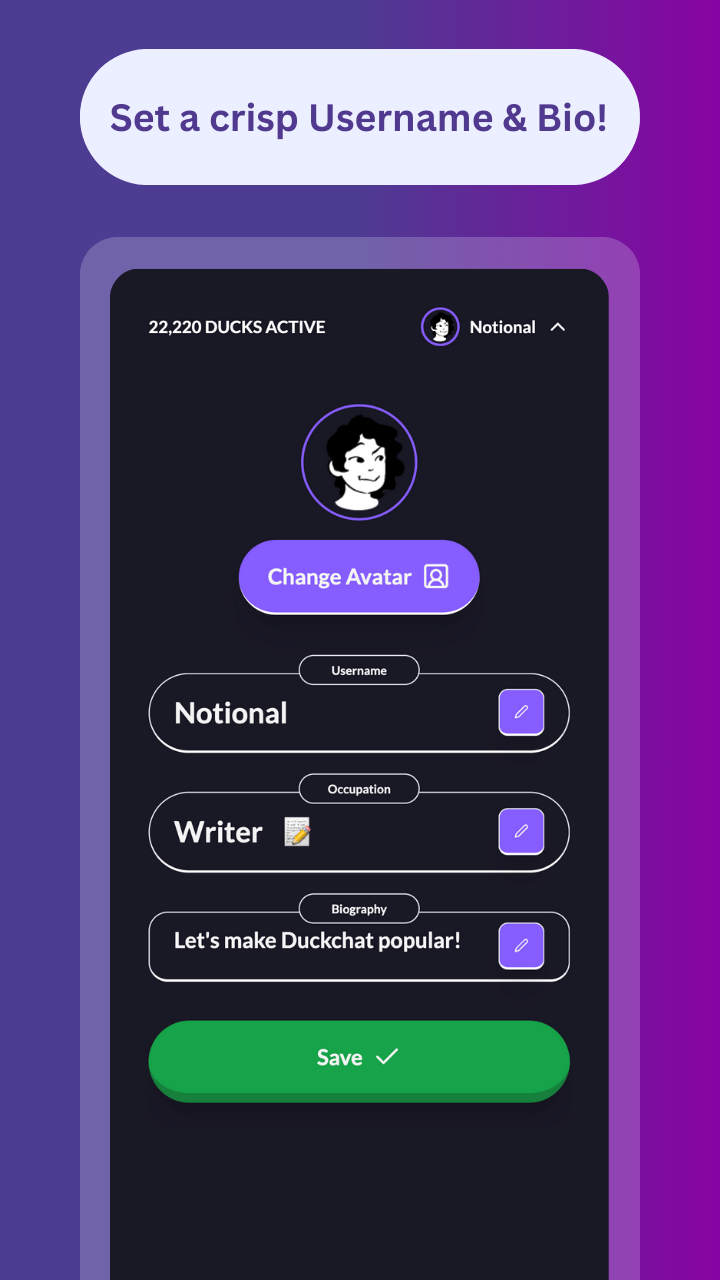 Duckchat Club is a fun and interactive app for chatting and making new friends. With chat rooms, private messaging, and expressive features like emojis and stickers, Duckchat Club makes social communication enjoyable. Whether connecting with friends or exploring new communities, this app provides a safe and engaging environment. Download Duckchat Club and start chatting with people from all over the world today.